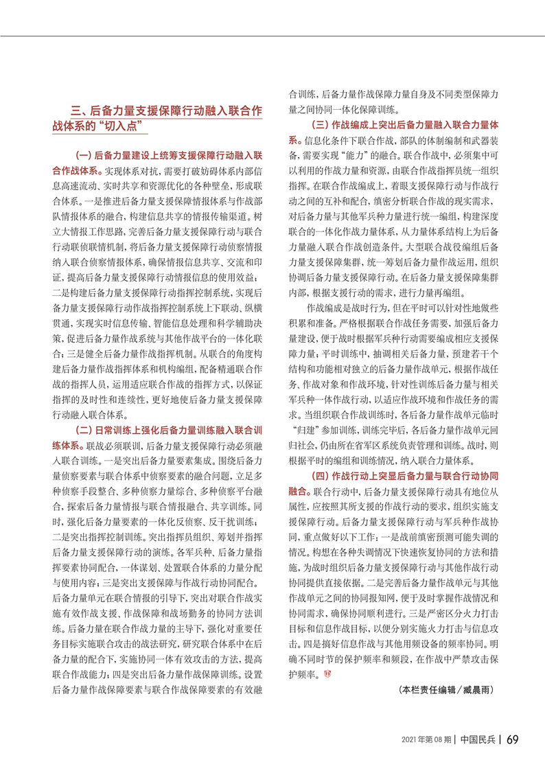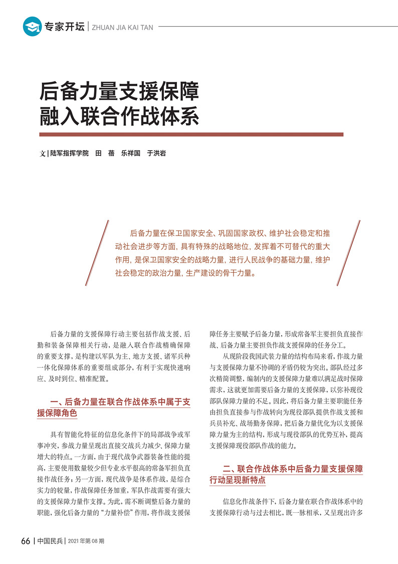 后備力量支援保障融入聯(lián)合作戰(zhàn)體系