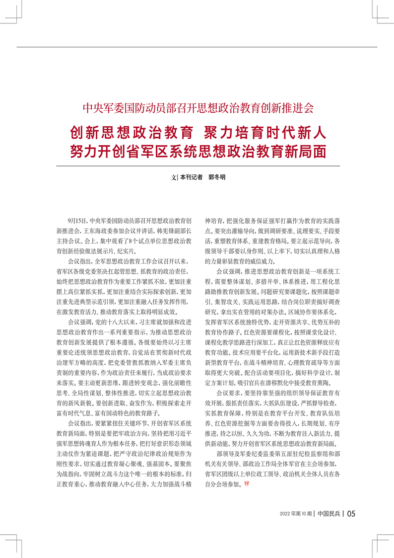中央軍委國防動員部召開思想政治教育創(chuàng)新推進會