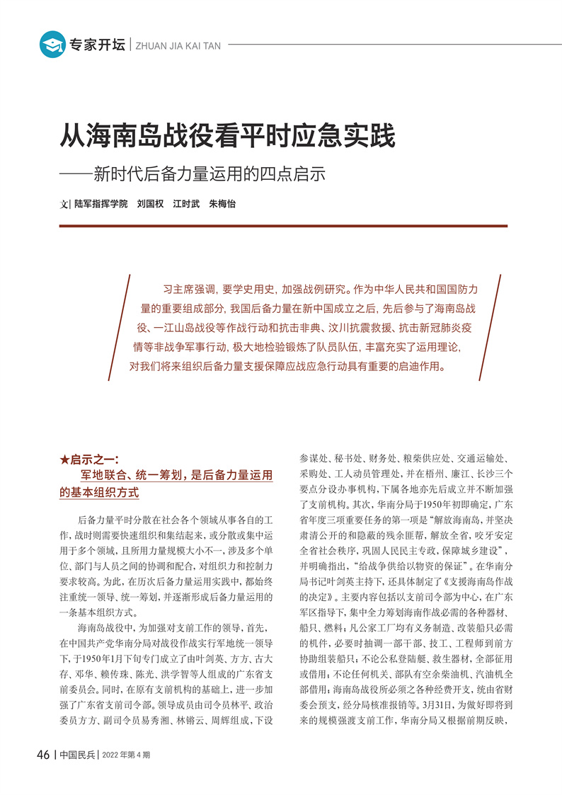 從海南島戰(zhàn)役看平時應(yīng)急實踐
