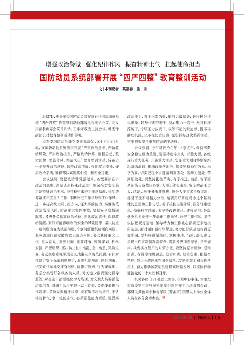 國(guó)防動(dòng)員系統(tǒng)部署開(kāi)展“四嚴(yán)四整”教育整訓(xùn)活動(dòng)