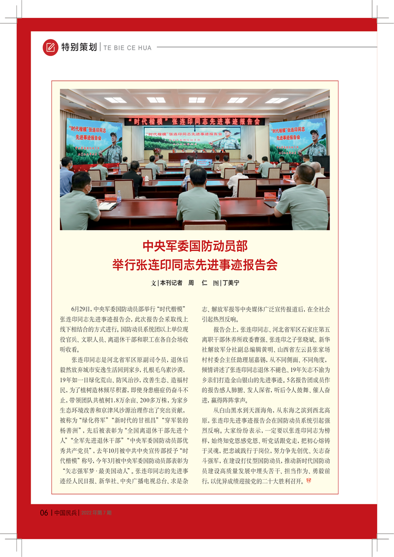 中央軍委國防動員部舉行張連印同志先進(jìn)事跡報告會