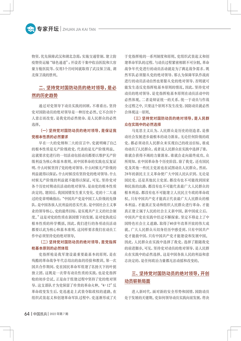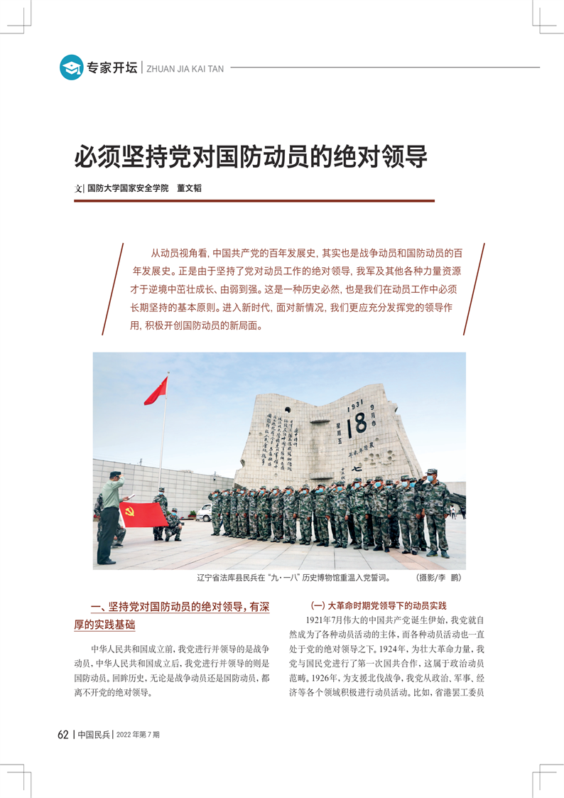 必須堅(jiān)持黨對(duì)國(guó)防動(dòng)員的絕對(duì)領(lǐng)導(dǎo)