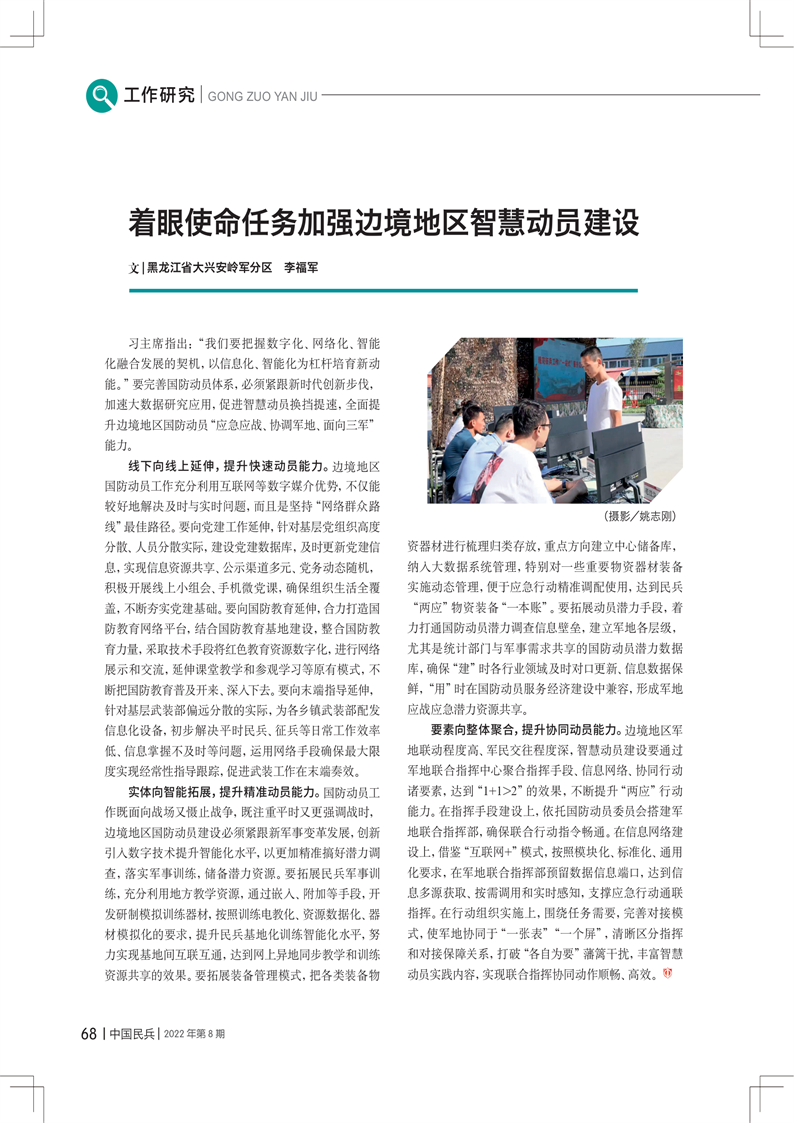 著眼使命任務(wù)加強邊境地區(qū)智慧動員建設(shè)