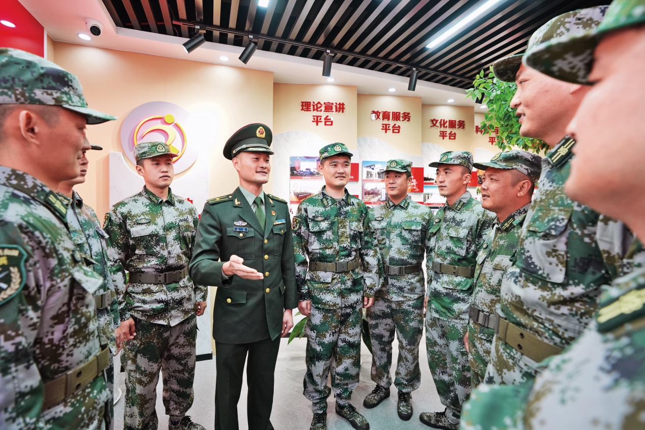 馬莊民兵營宣傳小分隊(duì)到駐軍部隊(duì)宣講黨的創(chuàng)新理論。