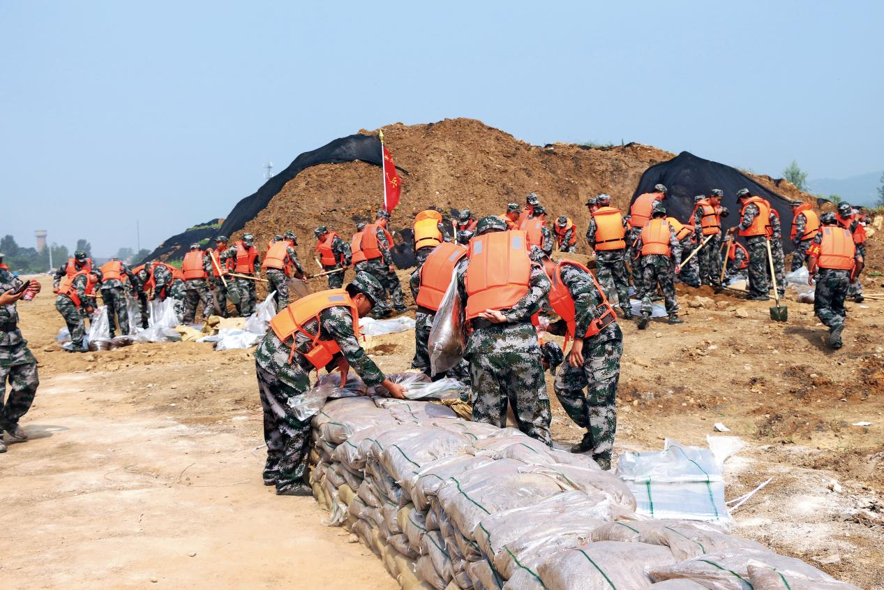 險情就是命令。正在執(zhí)勤室的民兵迅速按程序上報情況,啟動應(yīng)急預(yù)案。不到半小時時間,民兵營抗洪搶險一連20名運(yùn)輸和土木工程等專業(yè)的隊(duì)員即前出抵達(dá)險情位置。他們在現(xiàn)場經(jīng)過研判,采用圍井反壓的方式對泡泉處進(jìn)行堤壩加固,裝黏土、壘麻袋、填沙石,經(jīng)過一個多小時的緊急處置,成功解除了險情。
