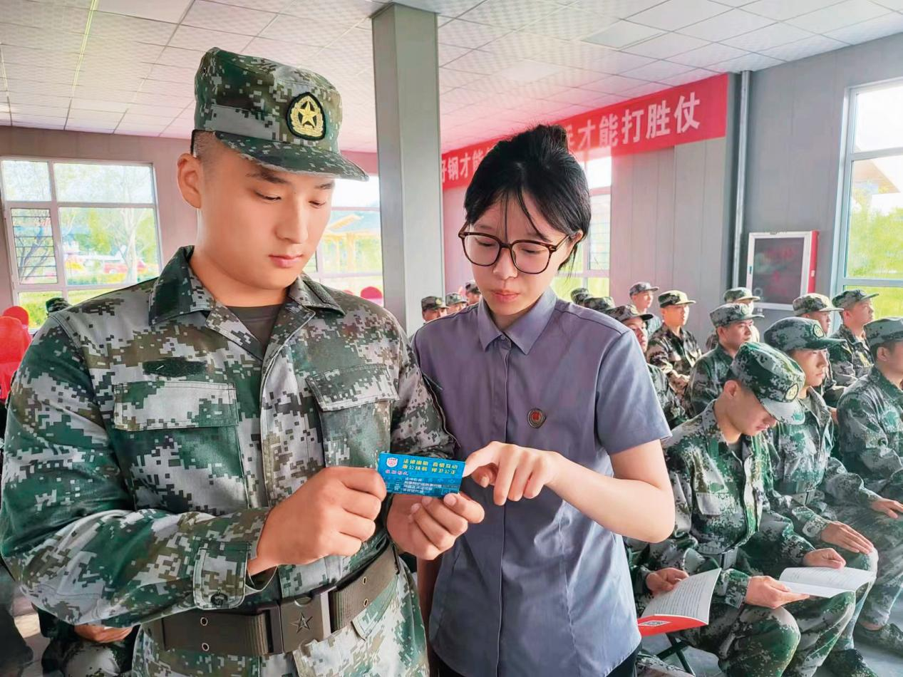 溫縣司法局工作人員給預定新兵發(fā)放涉軍維權服務卡。