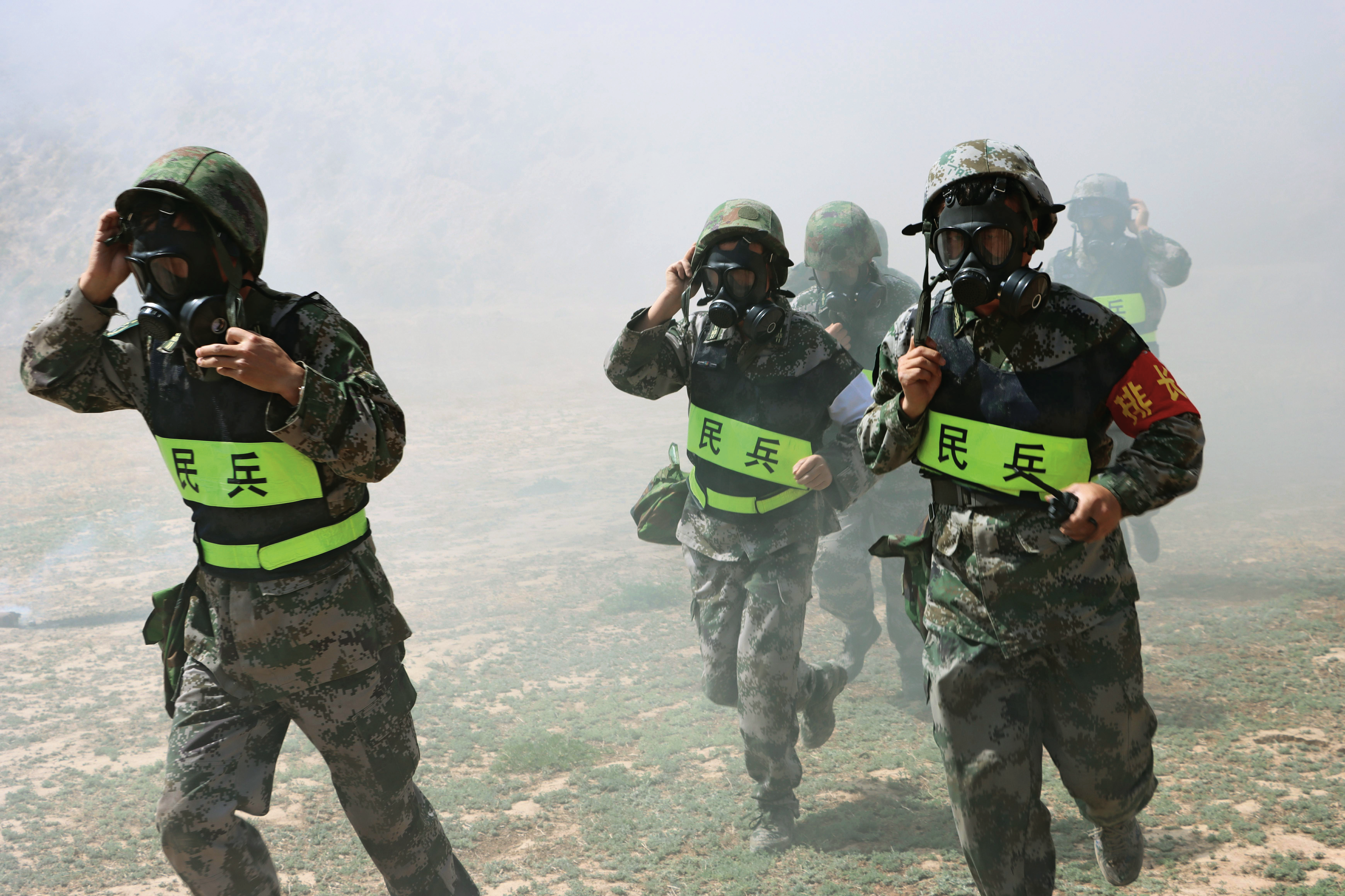 白銀軍分區(qū)組織參加演訓(xùn)的民兵快速通過“染毒地帶”。