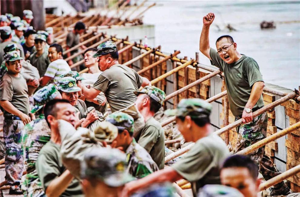 銅梁區(qū)人武部組織少云民兵應(yīng)急連參加抗洪搶險(xiǎn)。(攝影/龍 帆)