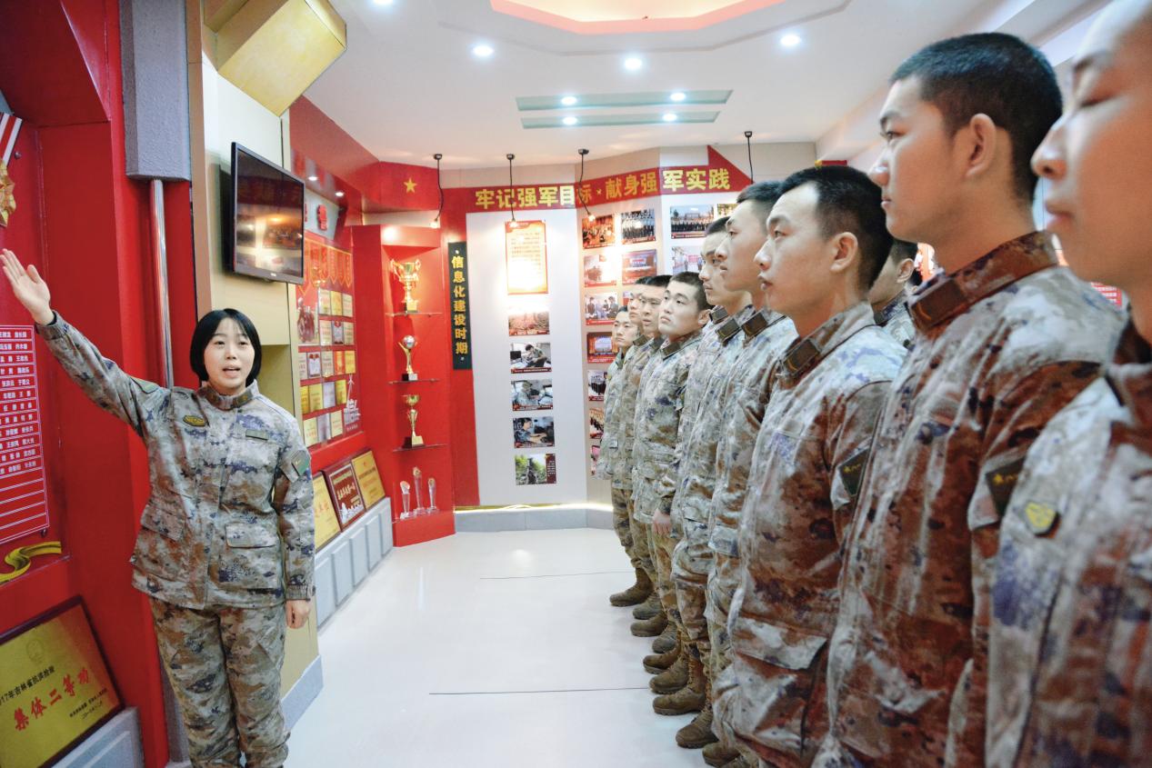 吉林省軍區(qū)直屬隊官兵在榮譽室內(nèi)學(xué)傳統(tǒng)、強信念。(攝影/周春旭)