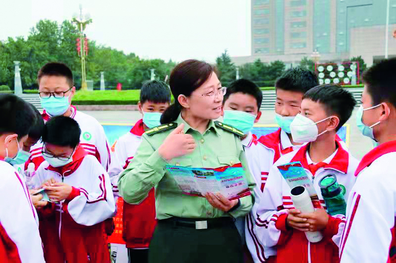 韓曉慶深入轄區(qū)學(xué)校開展國防教育知識宣傳。(攝影/董 帥)