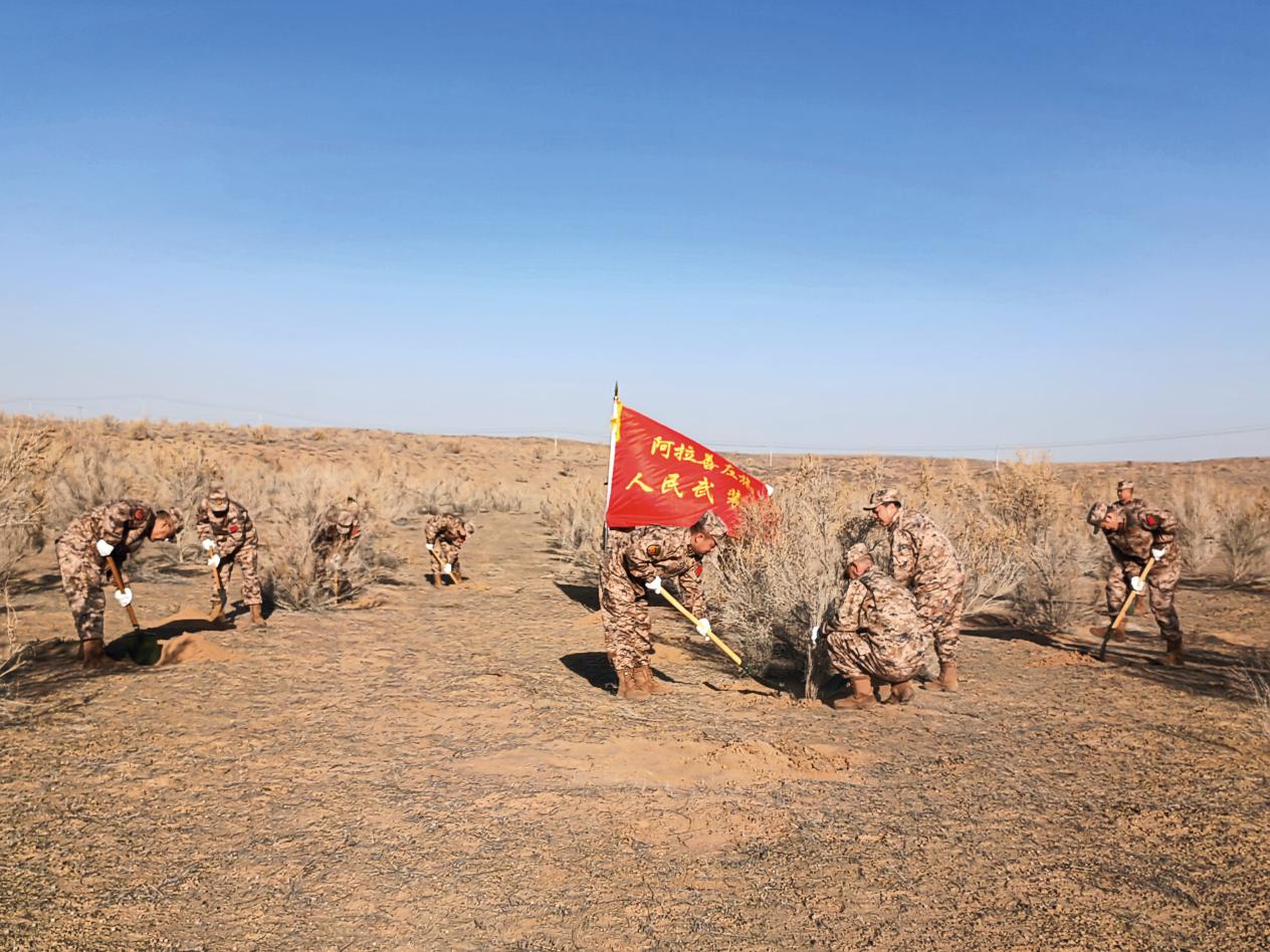 精誠所至,金石為開。阿拉善軍分區(qū)官兵治沙播綠的成果極大激發(fā)了當(dāng)?shù)厝罕姳Wo(hù)生態(tài)、建設(shè)美好家園的信心,人人治沙、處處播綠逐漸成為大家的共識,一場群眾性治沙播綠活動(dòng)在阿拉善大地上如火如荼地展開。