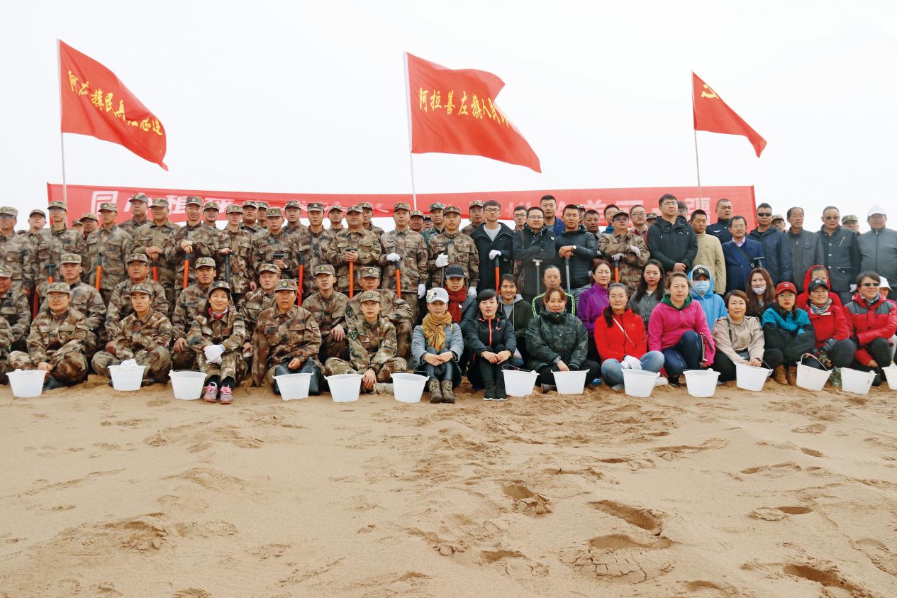 阿拉善盟軍民攜手開展植樹造林、防沙治沙大會(huì)戰(zhàn)。(攝影/王金鑫)