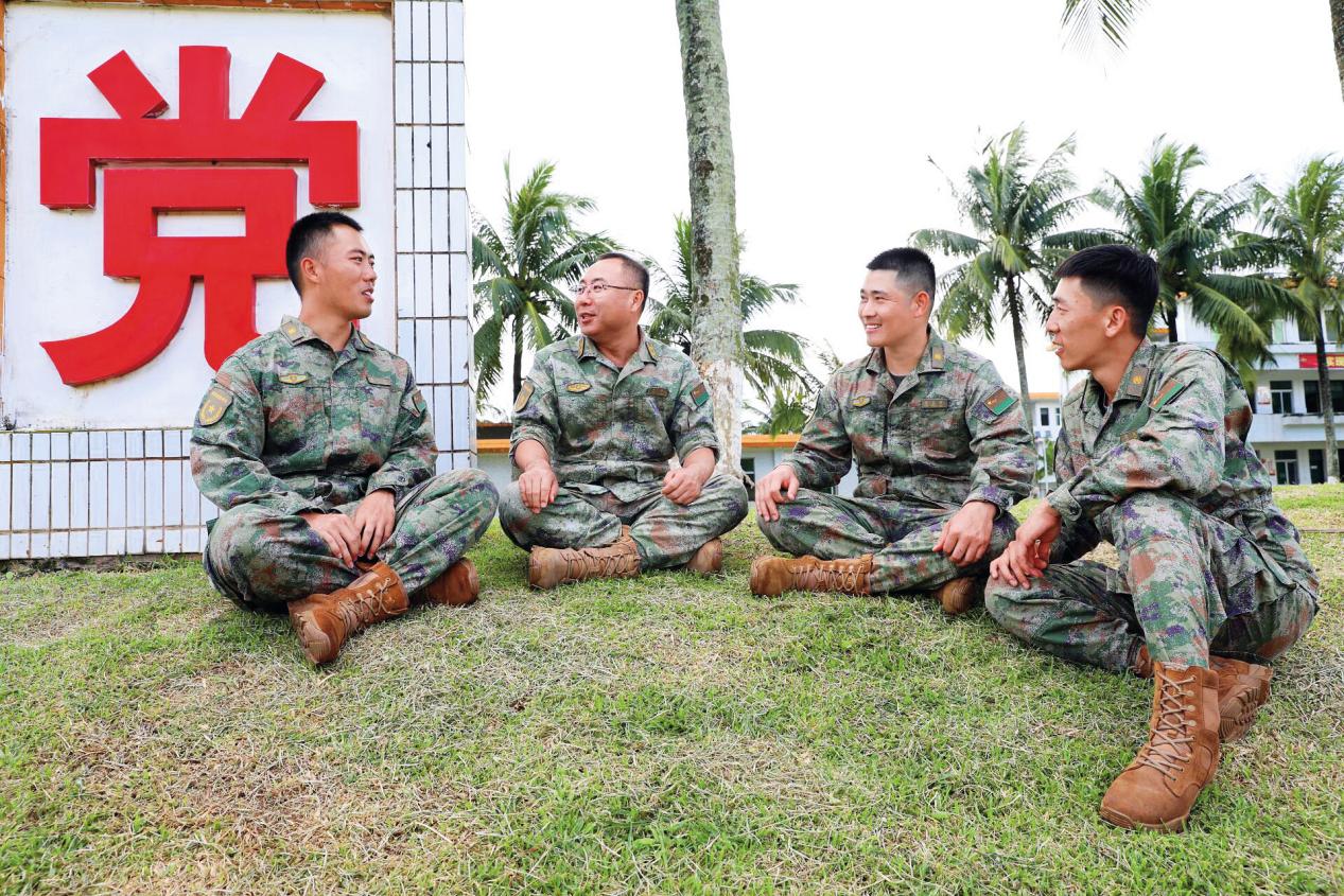 海南省軍區(qū)機(jī)關(guān)人員利用訓(xùn)練間隙與文職人員談心交心。
