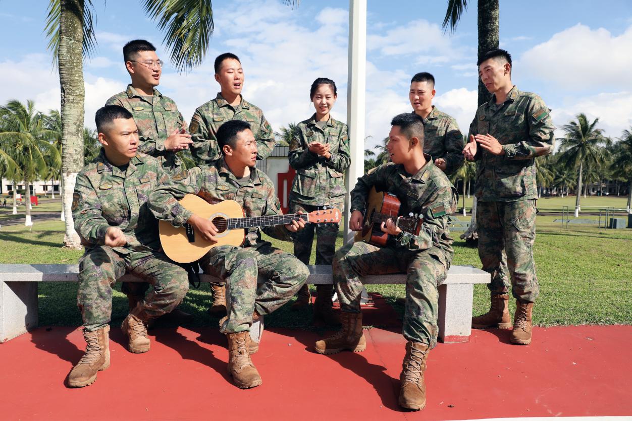 海南省軍區(qū)文職人員業(yè)余時(shí)間學(xué)唱“軍歌”。