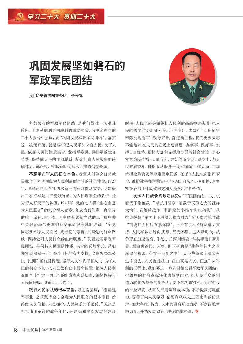鞏固發(fā)展堅(jiān)如磐石的軍政軍民團(tuán)結(jié)