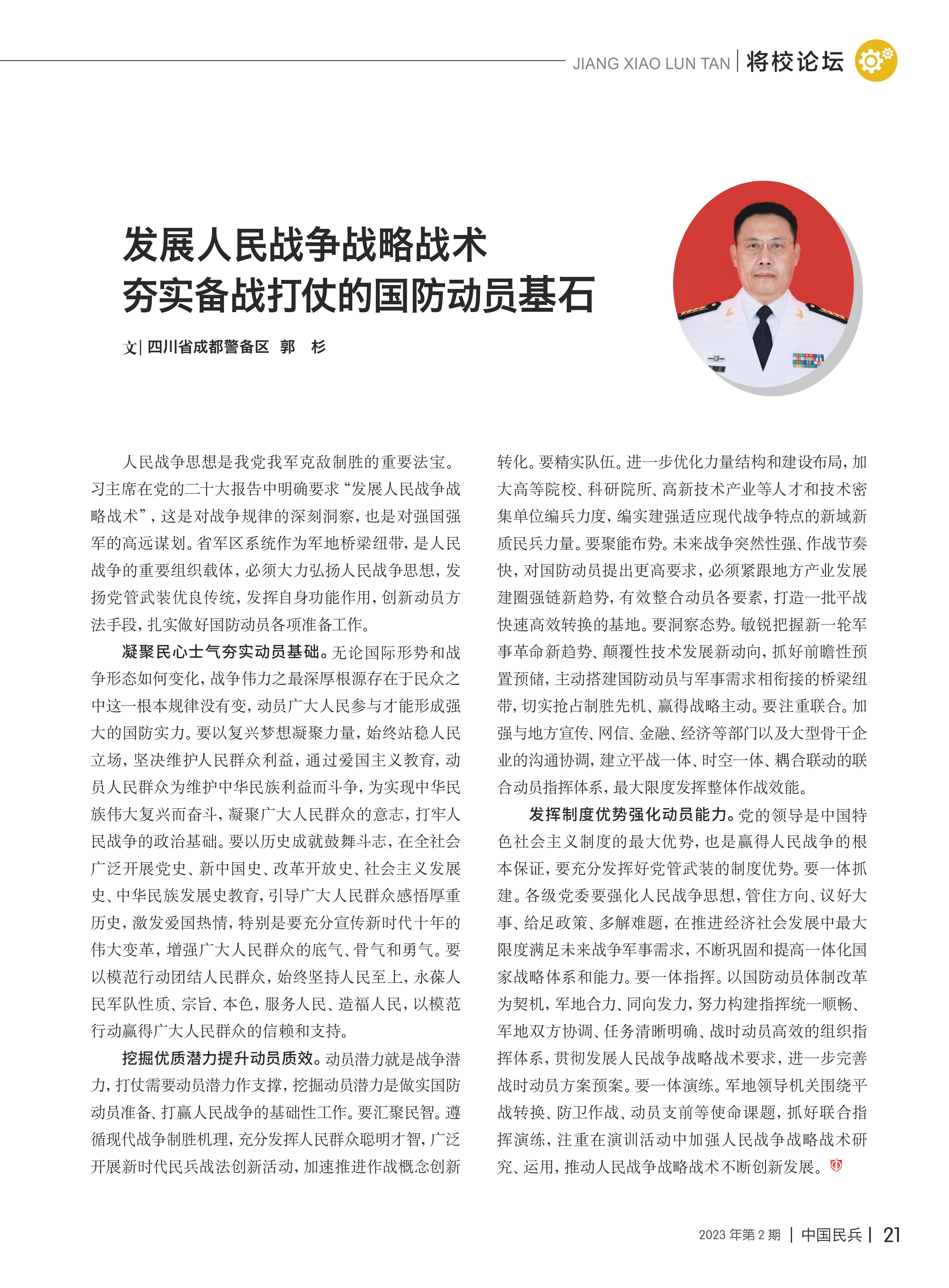發(fā)展人民戰(zhàn)爭戰(zhàn)略戰(zhàn)術(shù)夯實備戰(zhàn)打仗的國防動員基石