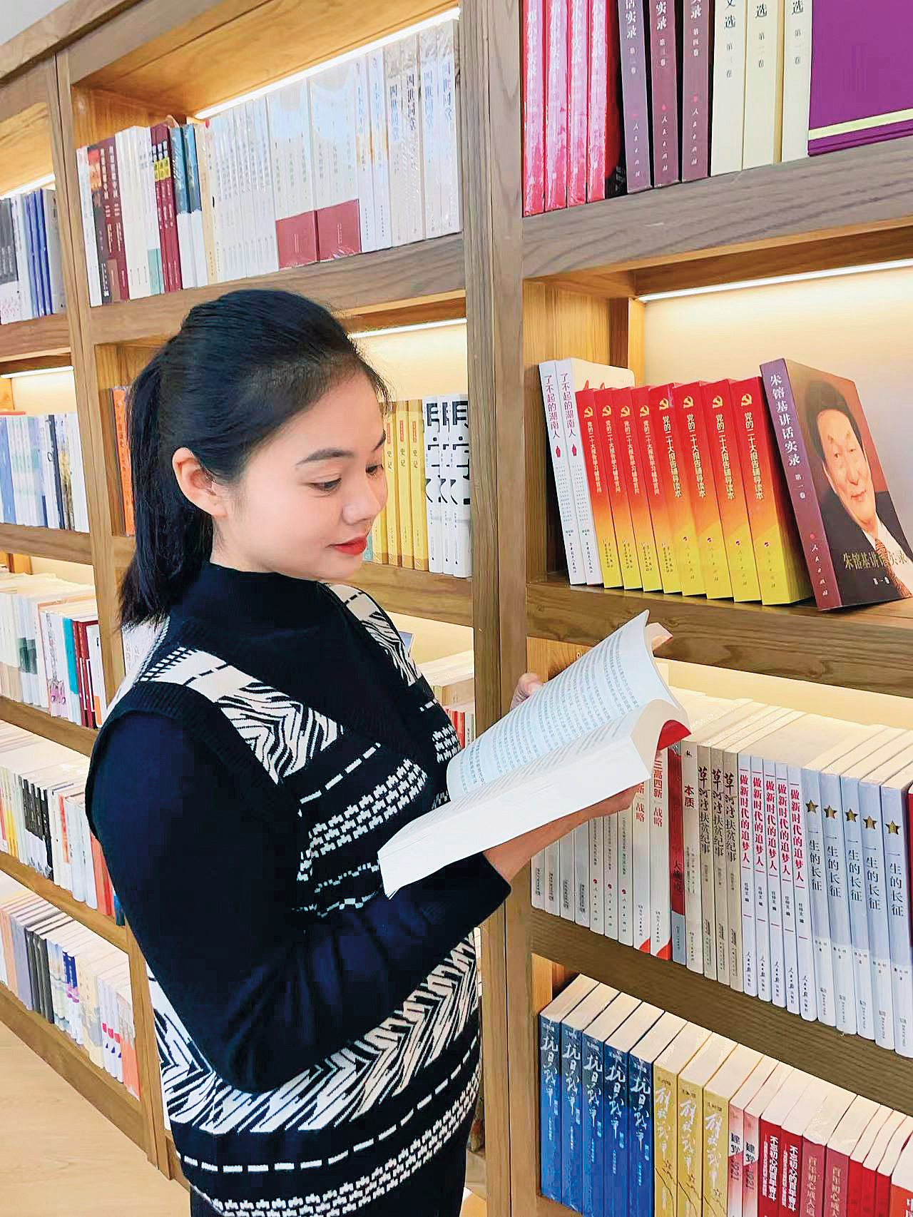朱淑華在圖書室學習黨的創(chuàng)新理論。 (攝影/歐智敏)