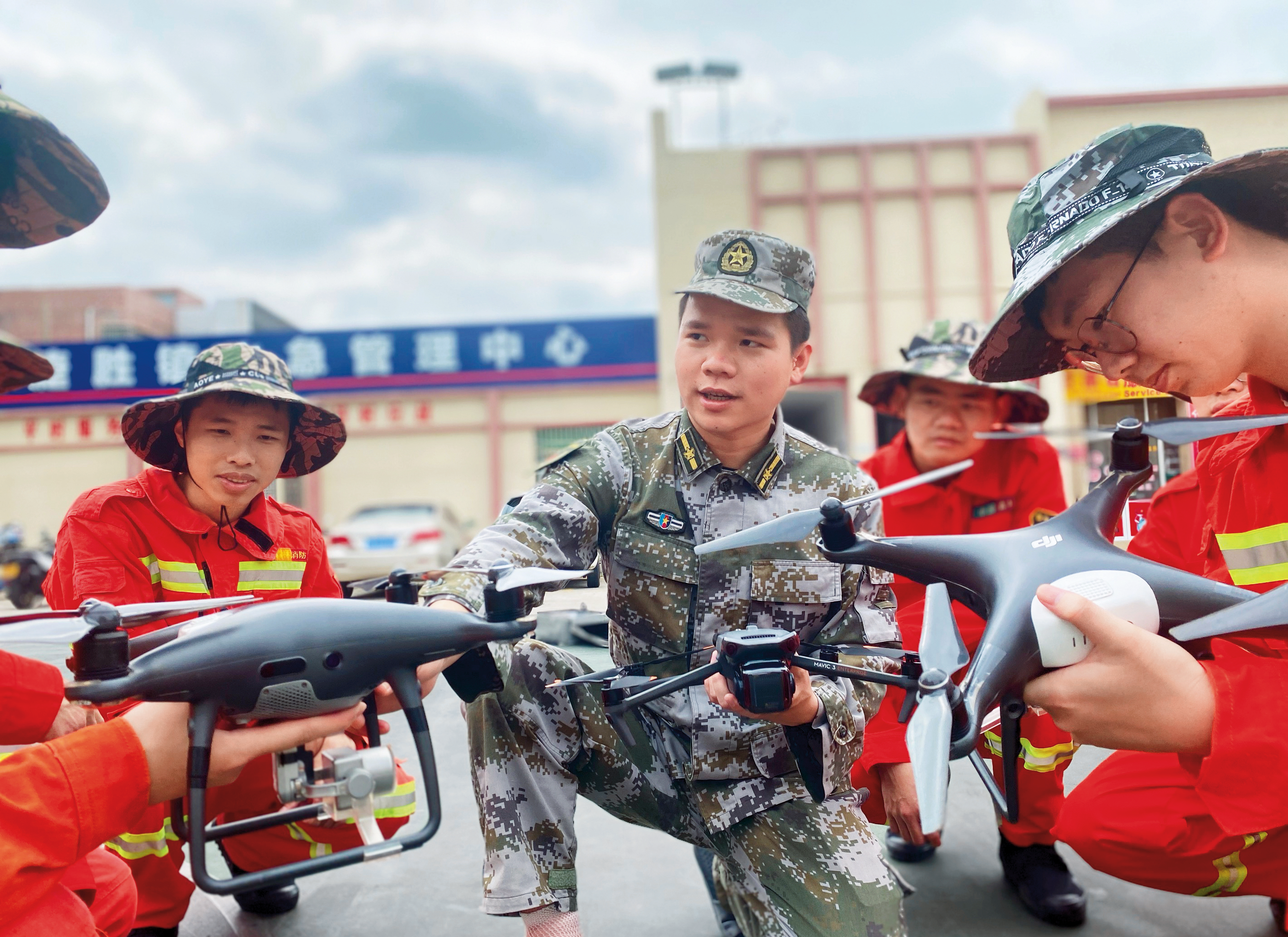 張少清為民兵講授無人機(jī)操作要領(lǐng)。 (攝影/莫明進(jìn))