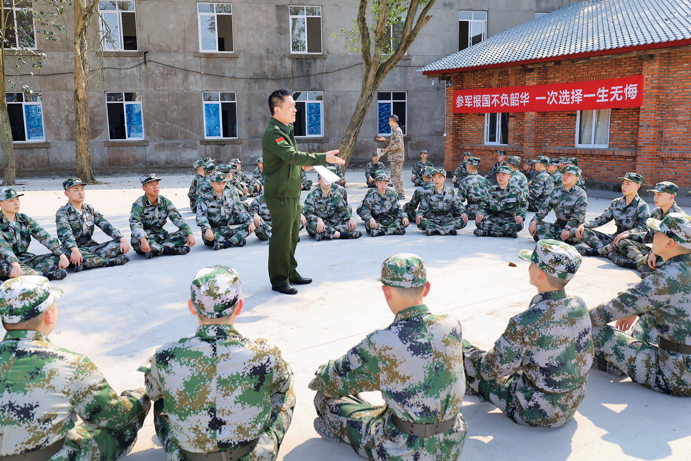 眉山市彭山區(qū)征兵辦組織預(yù)定新兵學(xué)習(xí)大會(huì)精神。(攝影/彭 琴)