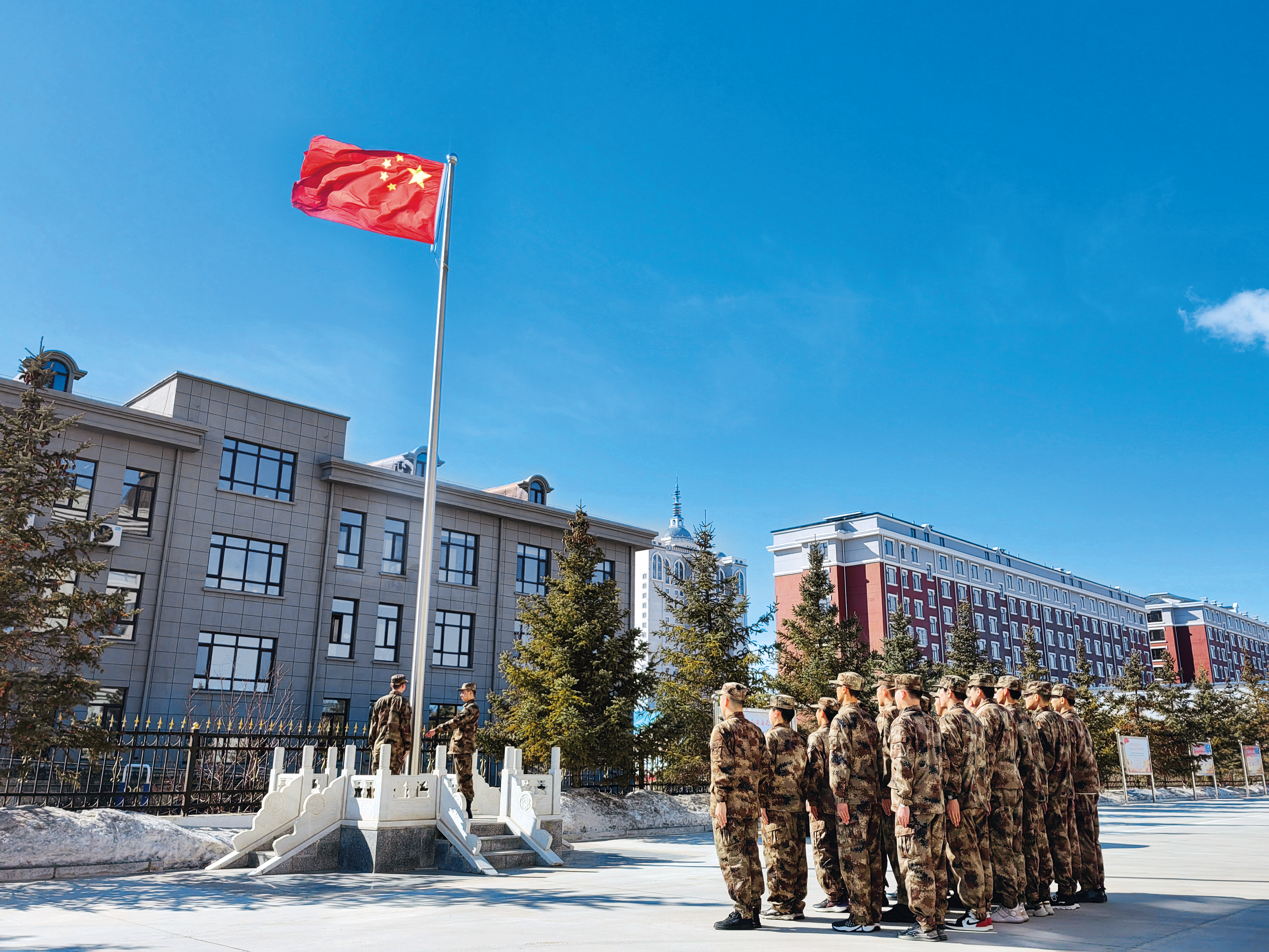 滿洲里市人武部通過(guò)舉行升國(guó)旗儀式等開(kāi)展配合教育。(攝影/于 兵)
