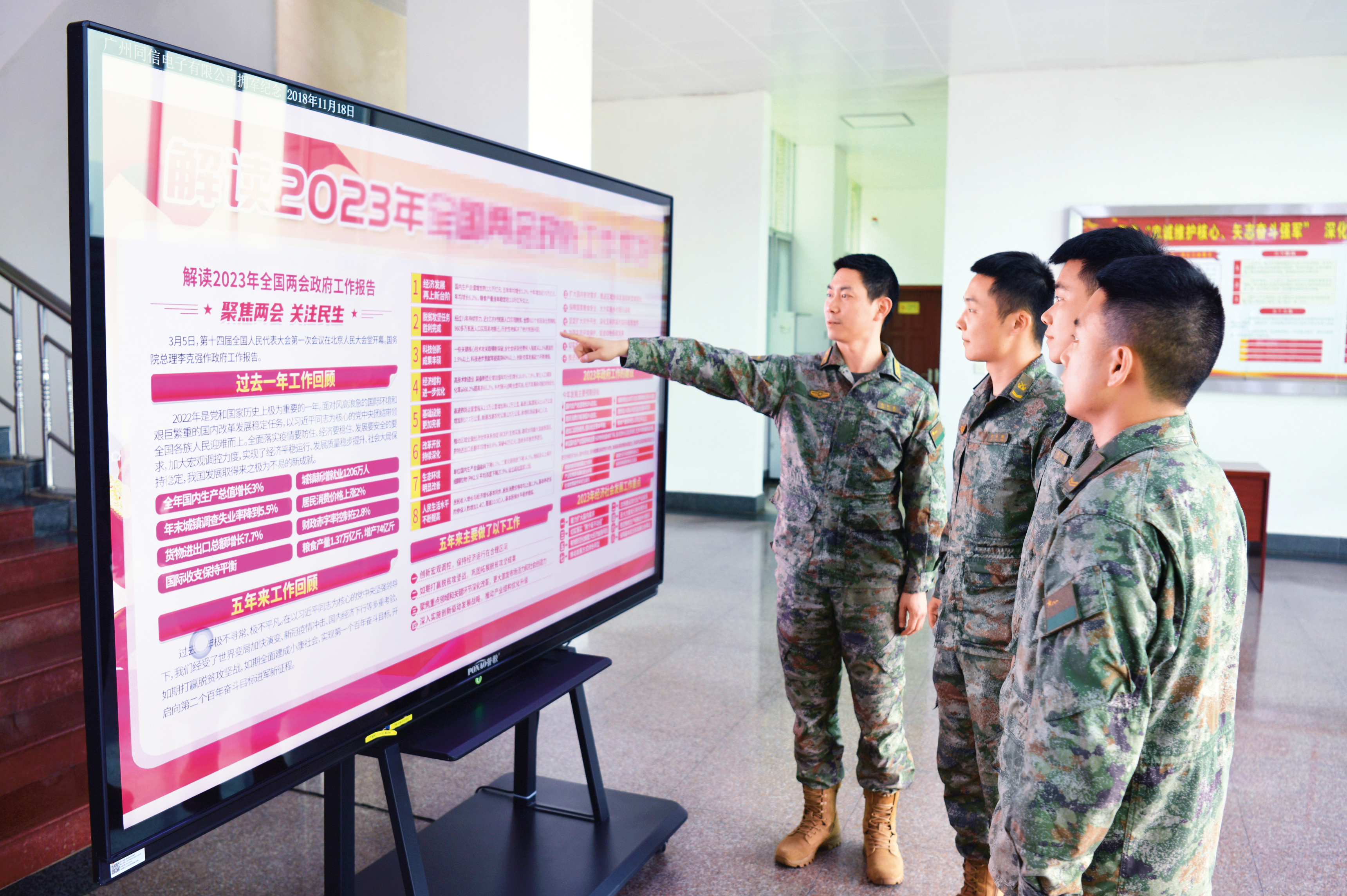 “習(xí)主席高瞻遠(yuǎn)矚、總攬全局,對(duì)鞏固提高一體化國(guó)家戰(zhàn)略體系和能力作出全面部署,為我們擘畫(huà)了新藍(lán)圖……”3月中旬,廣東省軍區(qū)堅(jiān)持領(lǐng)導(dǎo)帶頭先學(xué)、討論交流研學(xué)、全媒推送促學(xué)、融入實(shí)踐真學(xué)的“四學(xué)”模式,引導(dǎo)所屬人員深入學(xué)習(xí)十四屆全國(guó)人大一次會(huì)議精神特別是習(xí)主席重要講話精神,暢談感悟體會(huì),凝聚強(qiáng)國(guó)強(qiáng)軍意志。
