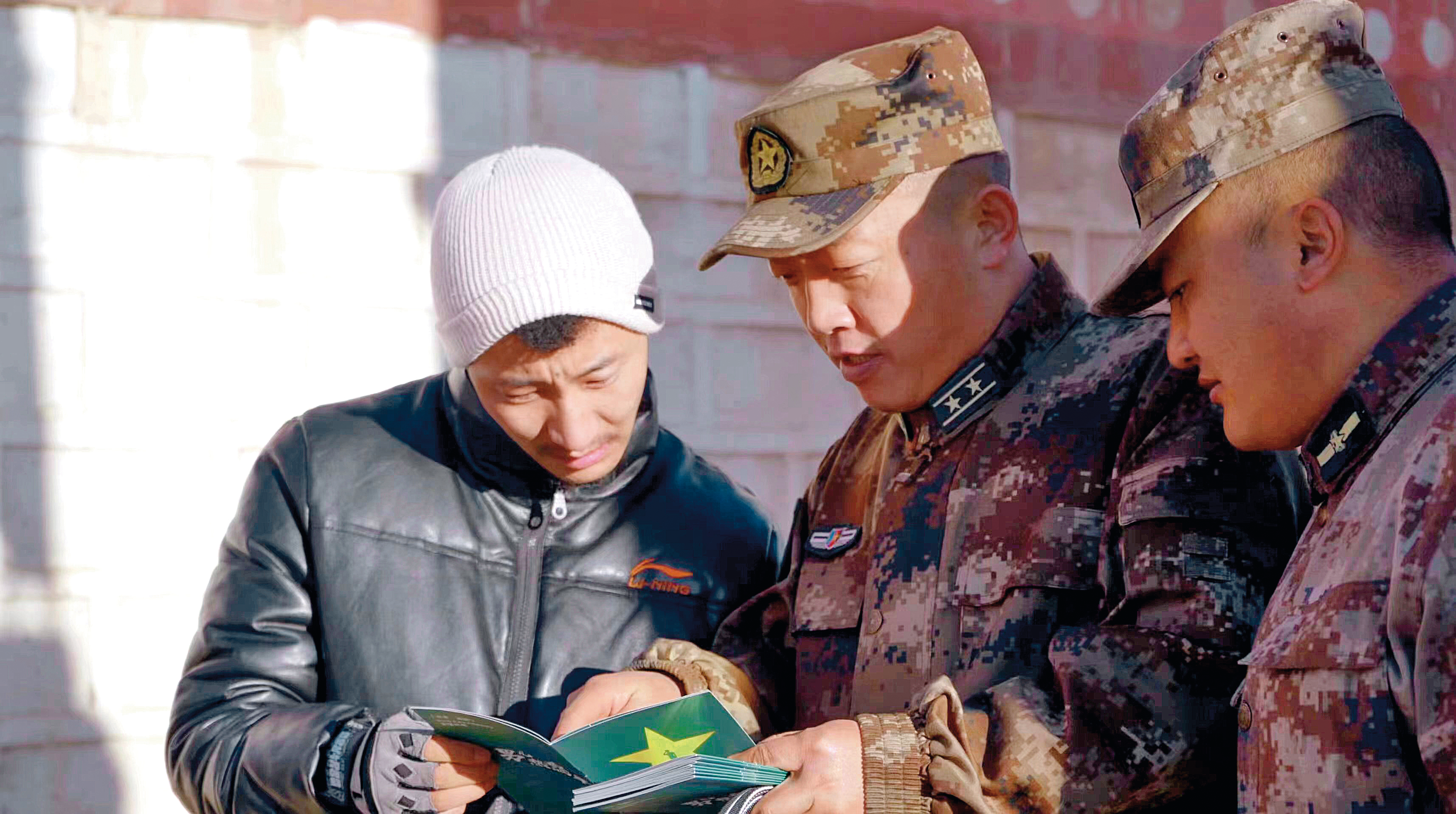 在和眾人問候致意之后,陳憲偉一把拉住了人群中一位藏族青年的手,激動地說:“格求,這次給你們民兵排帶來學(xué)習(xí)貫徹習(xí)近平新時代中國特色社會主義思想主題教育學(xué)習(xí)書籍,回去以后要組織民兵認(rèn)真學(xué)習(xí)?!?/p>