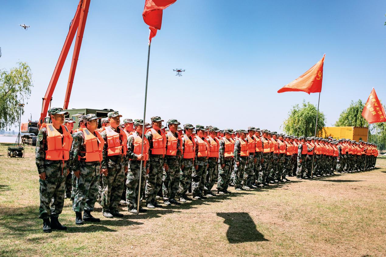 德州軍分區(qū)組織民兵防汛分隊(duì)拉動(dòng)演練。(攝影/張光勇)