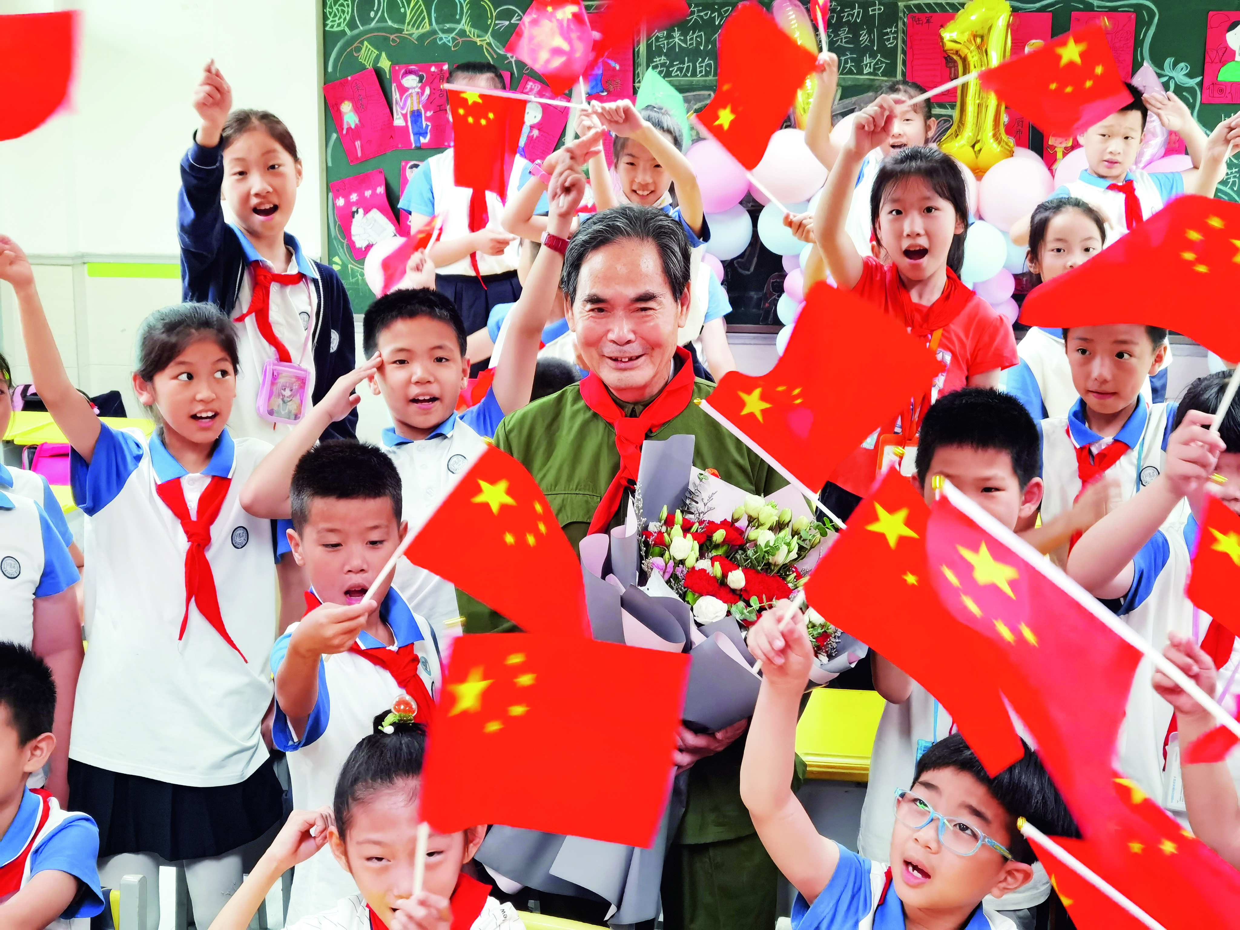 喜訊傳來(lái)的第二天,縉云縣宮前小學(xué)就邀請(qǐng)正回鄉(xiāng)休假的李步正回到母校,與學(xué)弟學(xué)妹們一起升國(guó)旗。學(xué)校領(lǐng)導(dǎo)說(shuō):“見(jiàn)到‘最可愛(ài)軍人、最驕傲校友’,在孩子們心里種下了一顆從軍報(bào)國(guó)的種子?!?/p>