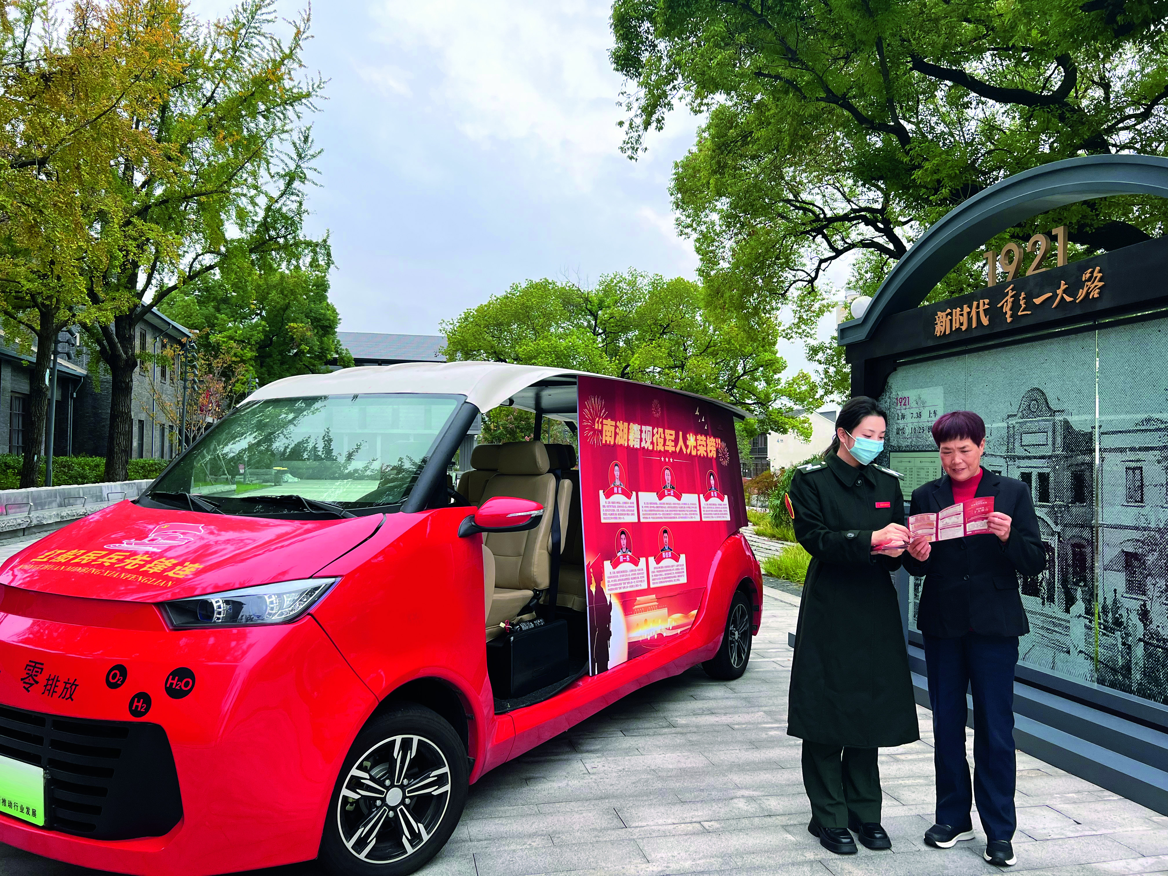 嘉興市南湖區(qū)利用景區(qū)巡邏車(chē)宣傳轄區(qū)立功官兵先進(jìn)事跡。(攝影/時(shí) 慶)