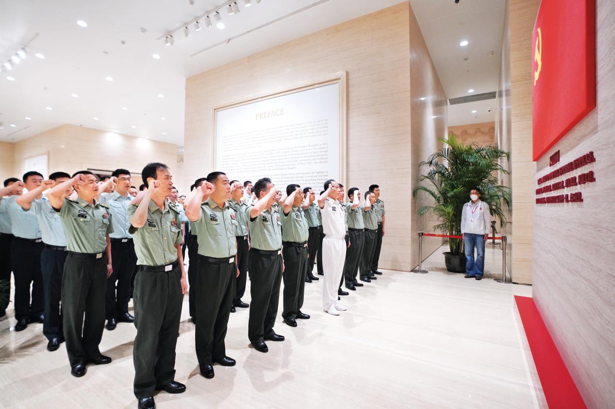 上海警備區(qū)組織機(jī)關(guān)黨員、干部在中共一大會(huì)址紀(jì)念館開展主題黨日活動(dòng)。