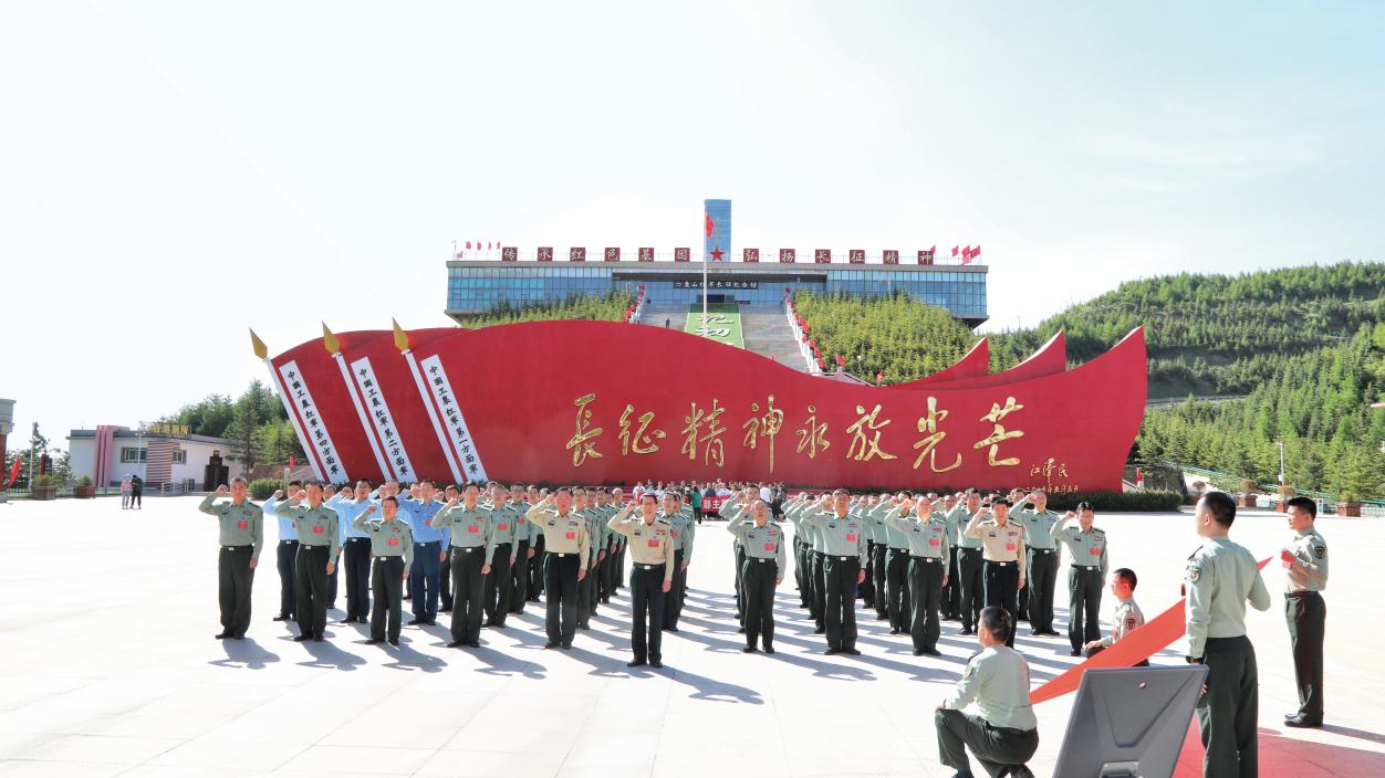 寧夏軍區(qū)組織機(jī)關(guān)黨員、干部赴六盤山紅軍長征紀(jì)念館重溫入黨誓詞。(攝影/張澤森)