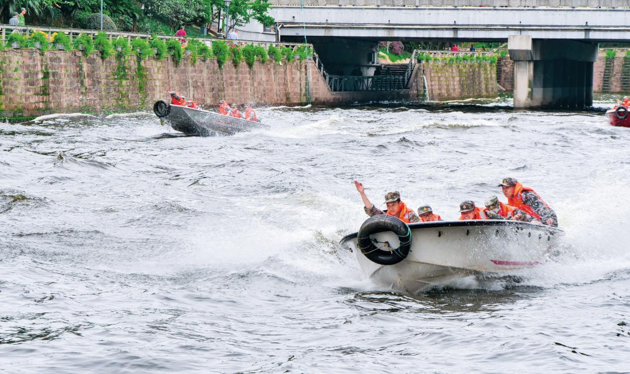 璧山區(qū)人武部組織民兵開展水上搜救課目訓(xùn)練。(攝影/劉金桂)