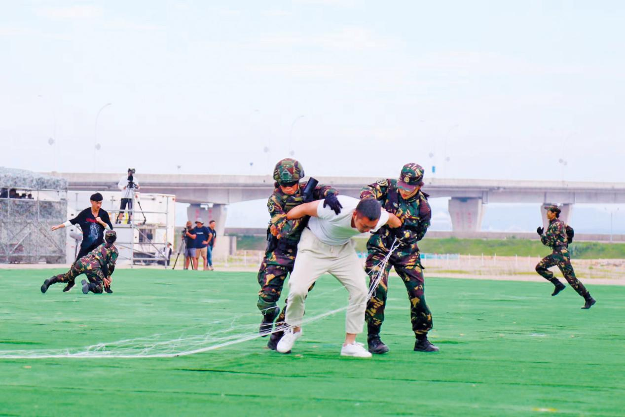 女民兵們進(jìn)行軍警聯(lián)防抓捕演練。