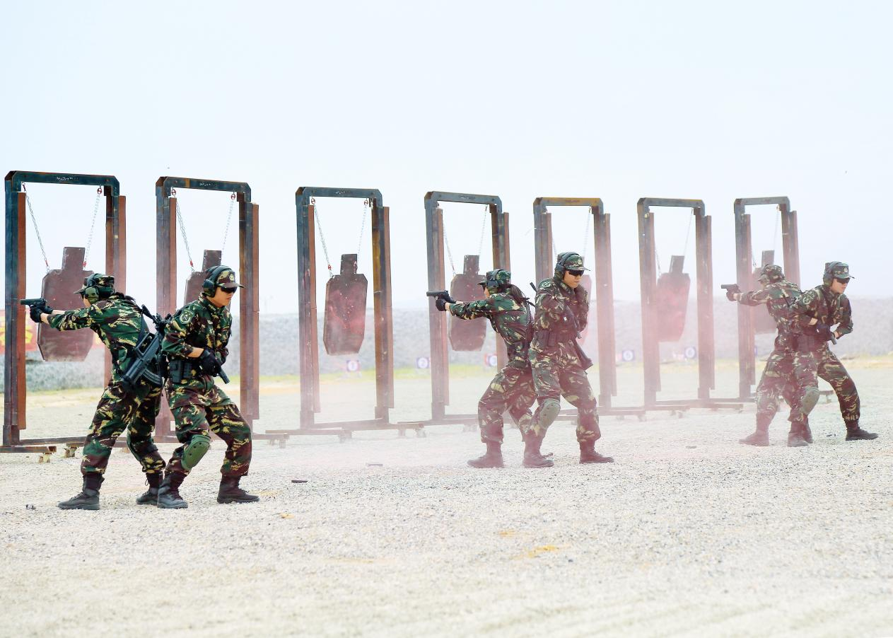 2016年,海霞特戰(zhàn)排跨省到某部特戰(zhàn)訓(xùn)練基地見學(xué)跟訓(xùn),在手槍特種射擊、踩繩攀登等課目訓(xùn)練中,女民兵們每天摔打幾十次,身上青一塊、紫一塊,但全程無人退縮,全部以優(yōu)異成績通過聯(lián)合考核。