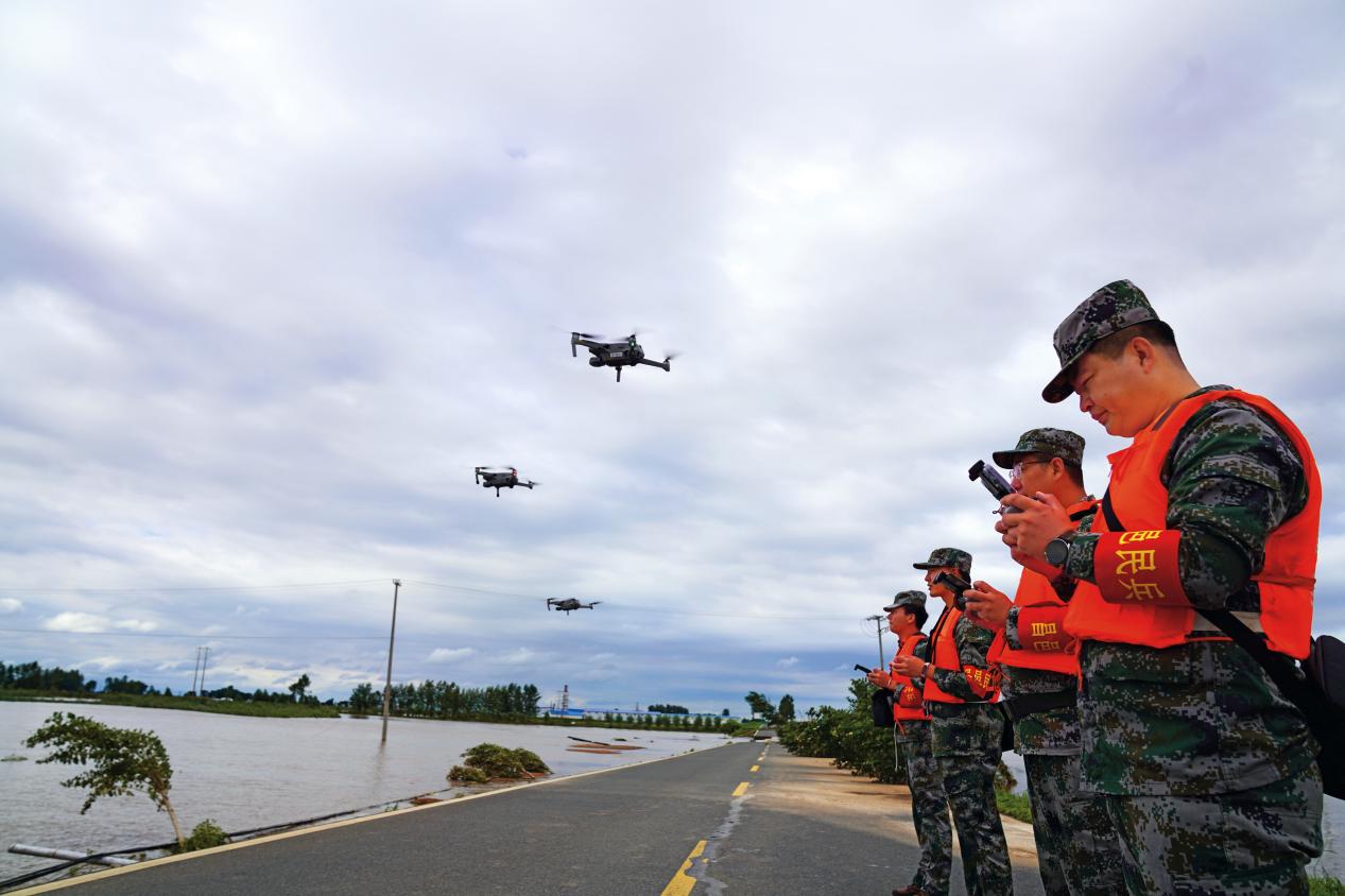 與過去千軍萬馬齊上陣、手拉肩扛堵決口的場面不同,今年在與滔天洪水的搏斗中,從氣象水文預(yù)報到防汛監(jiān)測預(yù)警,從無人機(jī)偵察到各類信息平臺指揮調(diào)度……一系列新型裝備紛紛亮相防汛救災(zāi)一線,成為民兵手中降服洪魔的“尖兵利器”。