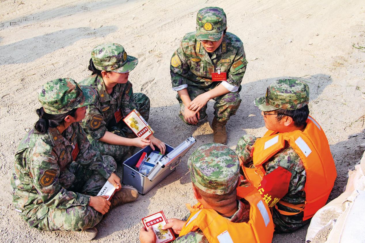 天津市民兵應(yīng)急排全體黨員面對黨旗莊嚴(yán)宣誓,紛紛遞交請戰(zhàn)書,要求到汛情最危急、任務(wù)最繁重的一線執(zhí)行任務(wù);天津警備區(qū)干休所特色醫(yī)療隊全體黨員自始至終堅守堤壩一線、洪澇深處、重建戰(zhàn)場,晝夜開展醫(yī)療巡診和緊急救治……