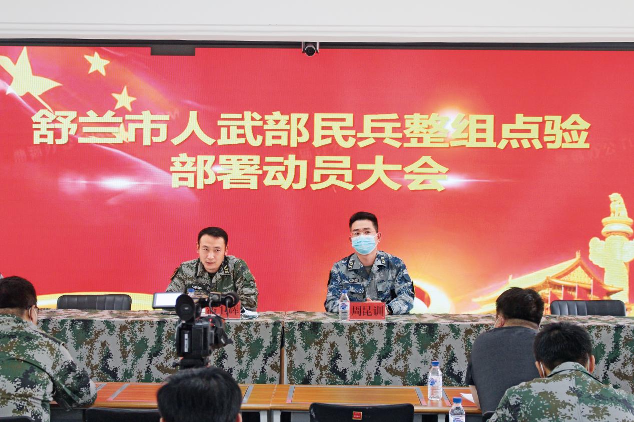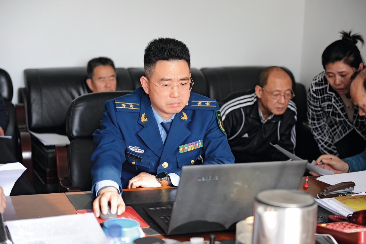 周昆訓烈士(右一)生前與部長潘衛(wèi)輝一起主持召開民兵整組部署動員會。(攝影/李云鵬)