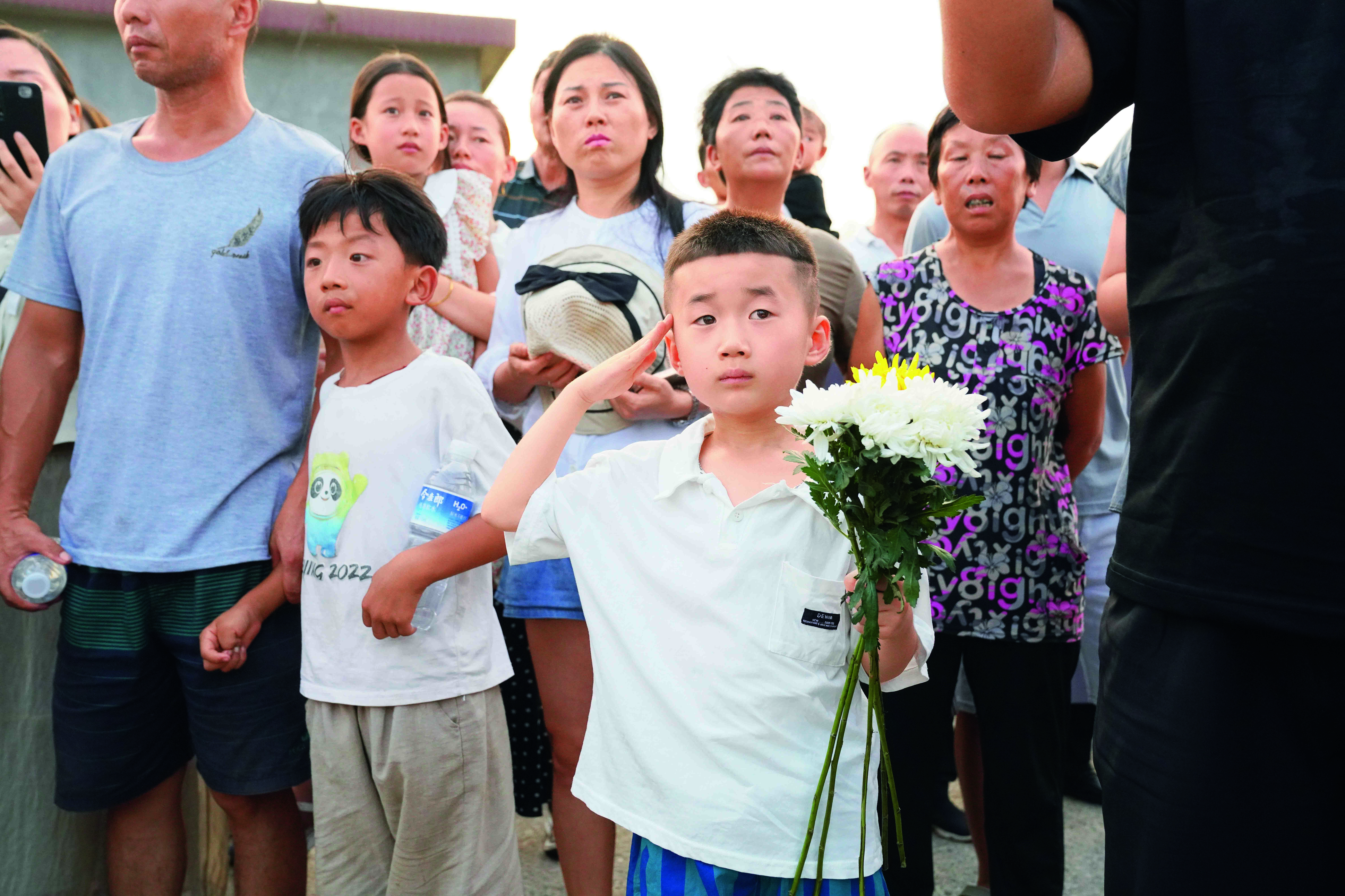 “為了國家的利益、人民的利益,沖到前邊是應(yīng)該的,你是我們永遠的驕傲!”8月17日,在確山縣竹溝革命烈士陵園,王佳泣不成聲告慰丈夫,“你是一個好兒子、好父親、好丈夫,你放心吧,我會照顧好孩子、照顧好父母……”