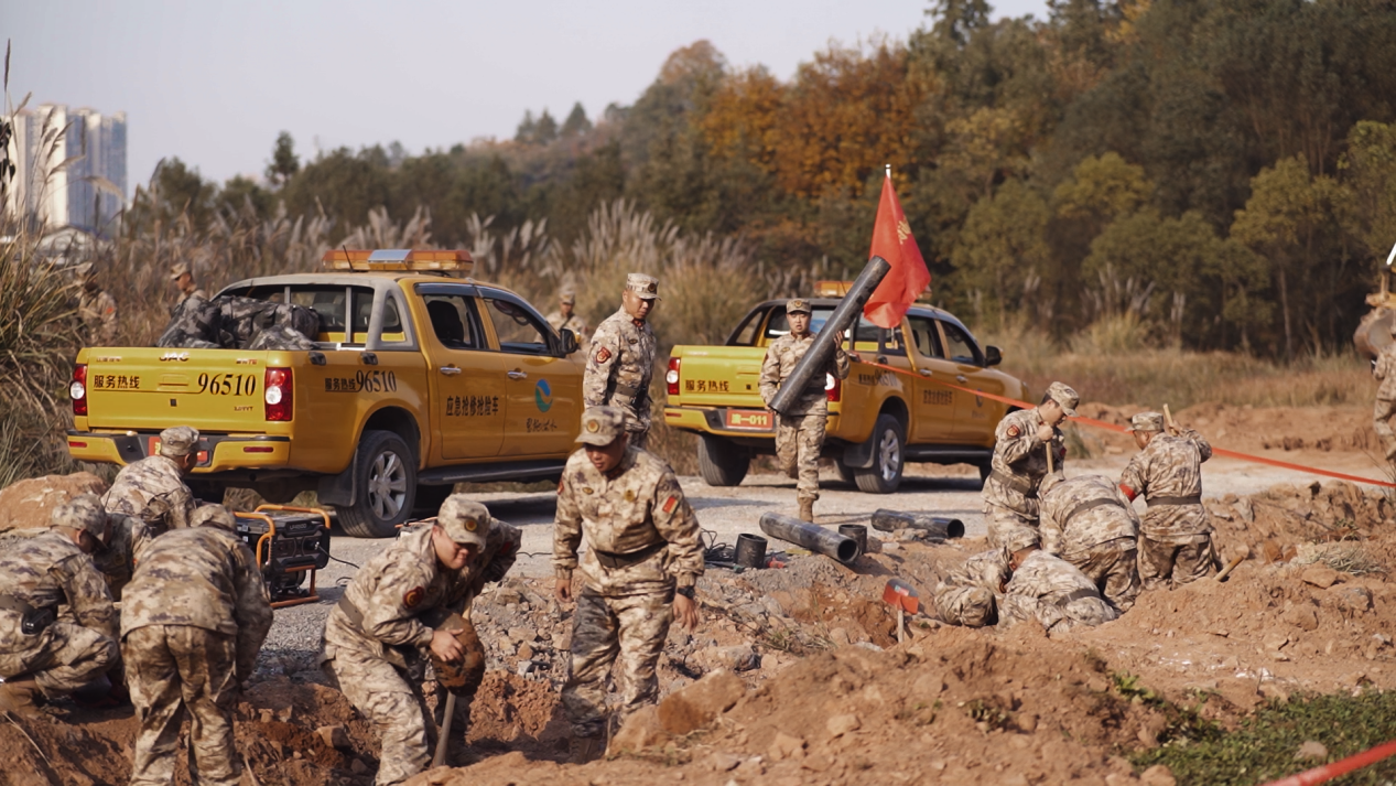 恩施市人武部組織民兵供水設施搶修分隊進行應急搶修訓練。(攝影/尹京晶)
