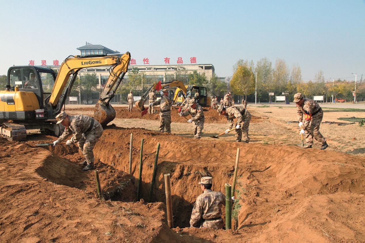 邯鄲市肥鄉(xiāng)區(qū)人武部組織民兵通用工程搶修分隊進行構(gòu)筑露天工事演練。(攝影/康盼盼)