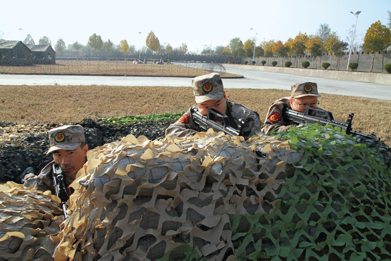 邯鄲市肥鄉(xiāng)區(qū)人武部組織民兵分隊進行偽裝遮障訓練。(攝影/周同義)