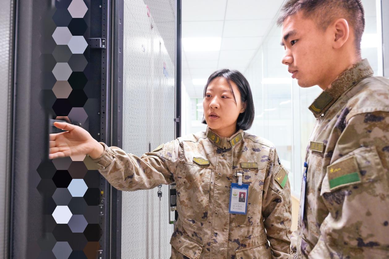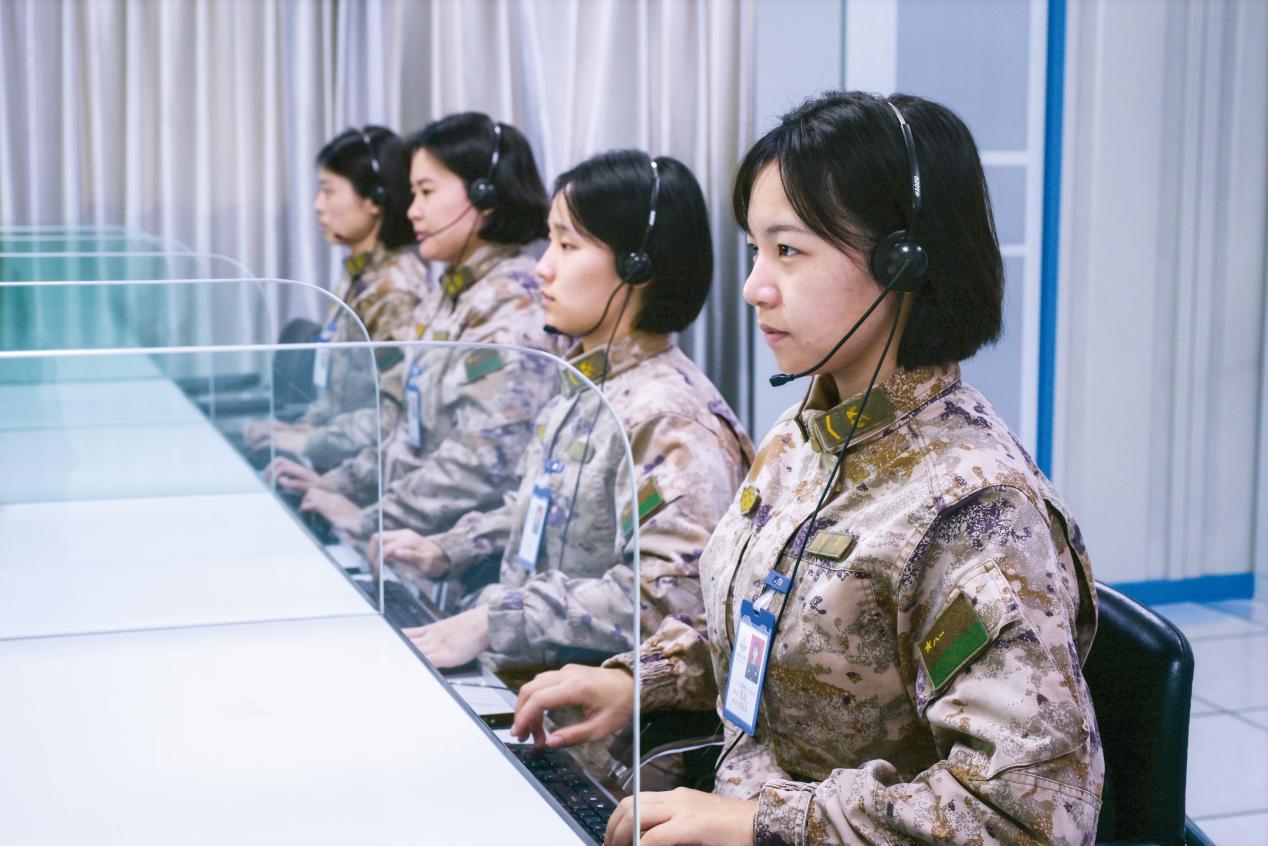 通信中隊(duì)女兵在崗執(zhí)守。(攝影/梁冰清)