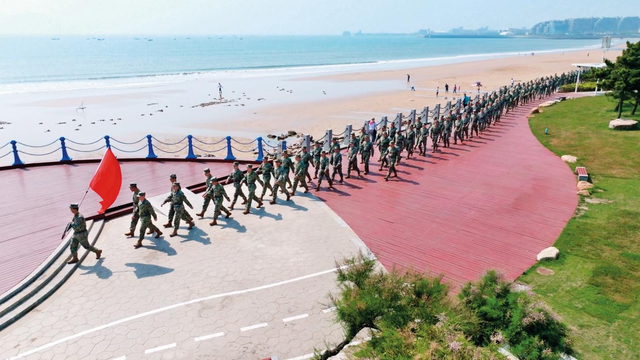 山東省軍區(qū)組織新招聘文職人員徒步拉練。(攝影/榮旻湜)