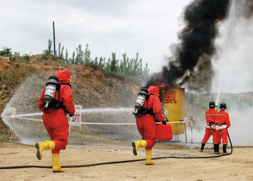威海市組織專武干部進(jìn)行消防應(yīng)急演練。(攝影/高 杰)