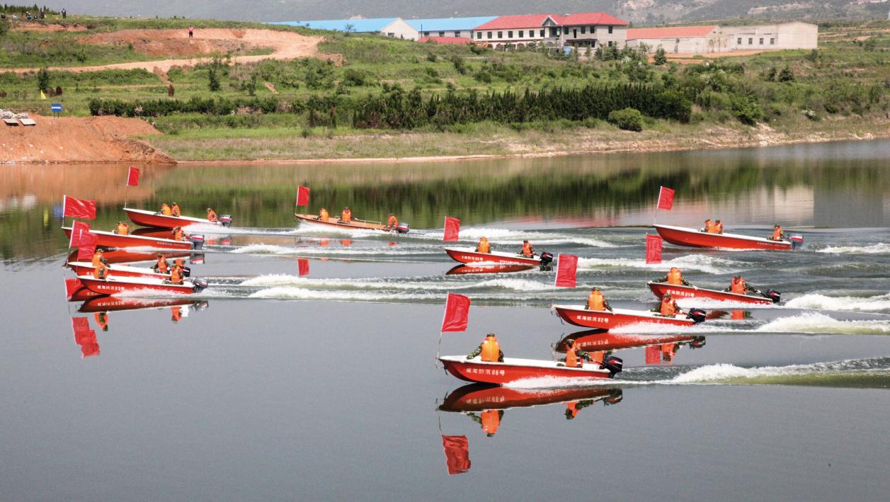 威海市組織民兵應(yīng)急分隊(duì)進(jìn)行防汛演練。(攝影/高 杰)