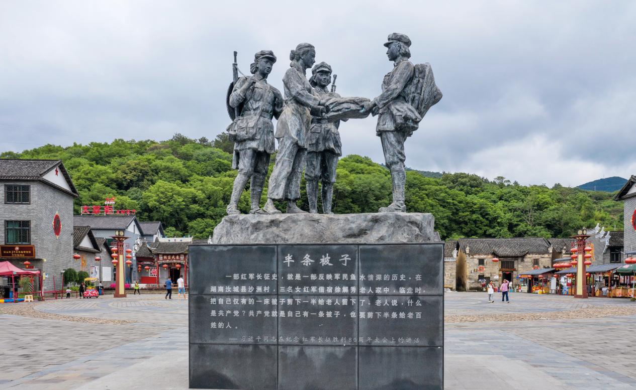 在湖南省汝城縣沙洲瑤族村民俗廣場上,一座主題為“半條被子”的大型雕塑矗立中央,向往來的游人無聲訴說著那個感動了無數(shù)人的故事。