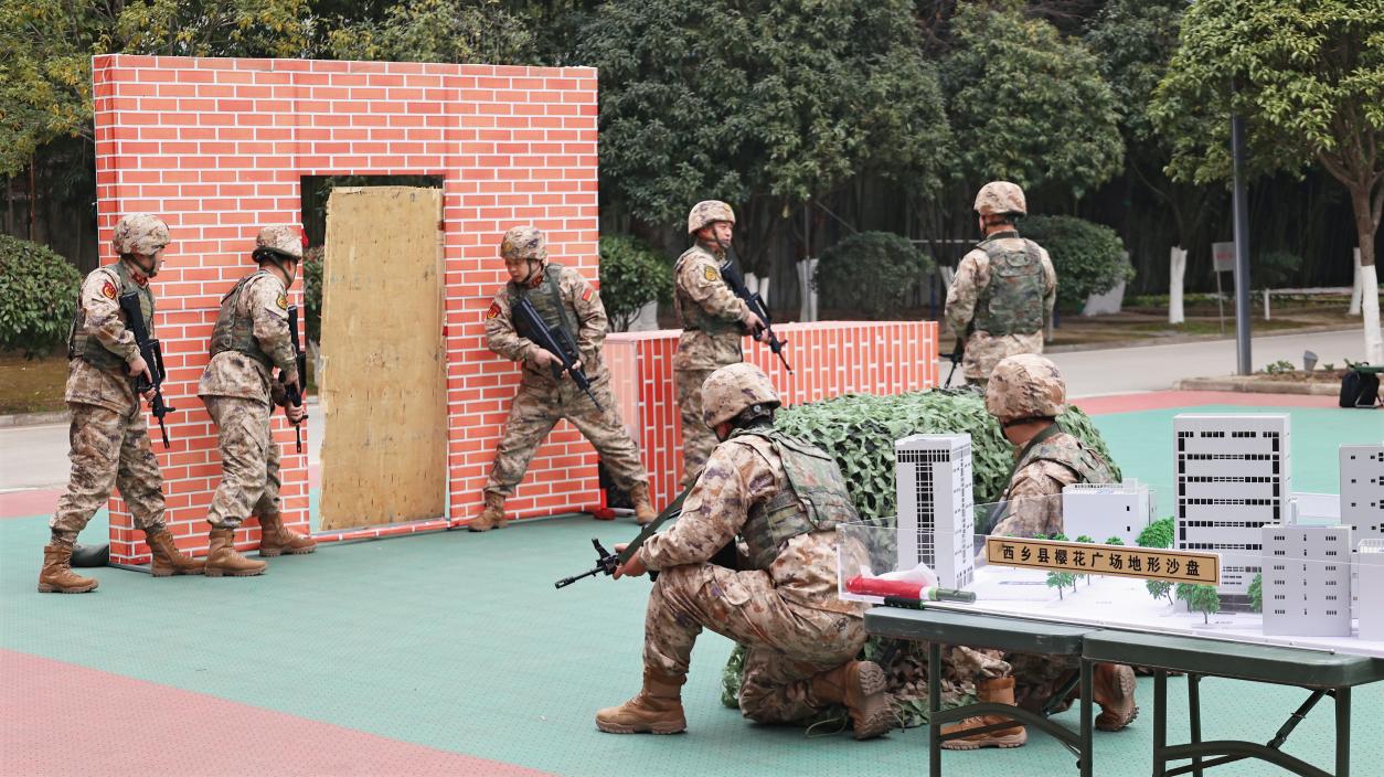 陜西省軍區(qū)組織民兵“四會(huì)”教練員教學(xué)示范。(攝影/梁磊)