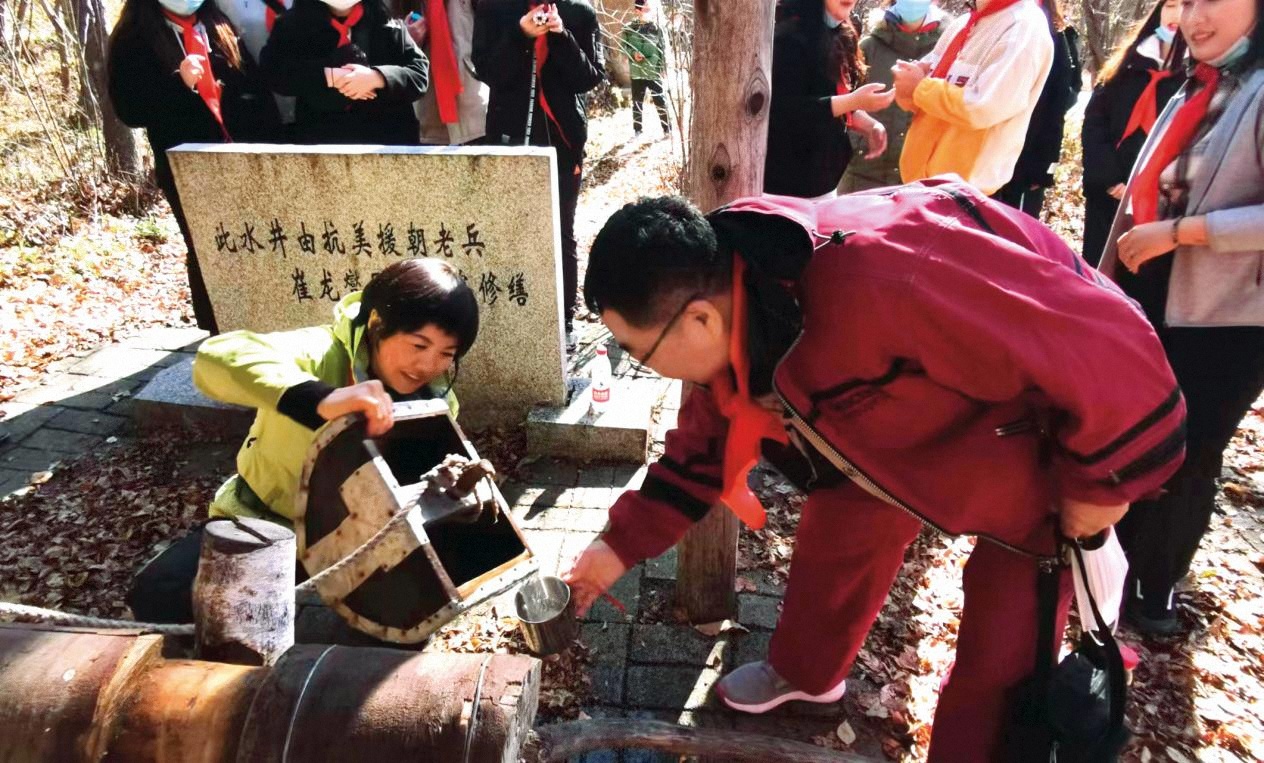 “金相和是中共汪清縣委第二任書(shū)記,在他犧牲后,慘無(wú)人性的敵人用鍘刀鍘下了他的頭顱,懸掛于村中的老榆樹(shù)上示眾,但這里的群眾沒(méi)有被嚇倒,他們滿(mǎn)含熱淚傳唱著歌頌金相和的《十進(jìn)歌》繼續(xù)堅(jiān)持抗戰(zhàn)……”鮮艷的紅旗下,一位身著迷彩服、梳著干練短發(fā)的女講解員時(shí)而慷慨陳詞、時(shí)而潸然淚下,引發(fā)在場(chǎng)師生的強(qiáng)烈共鳴。