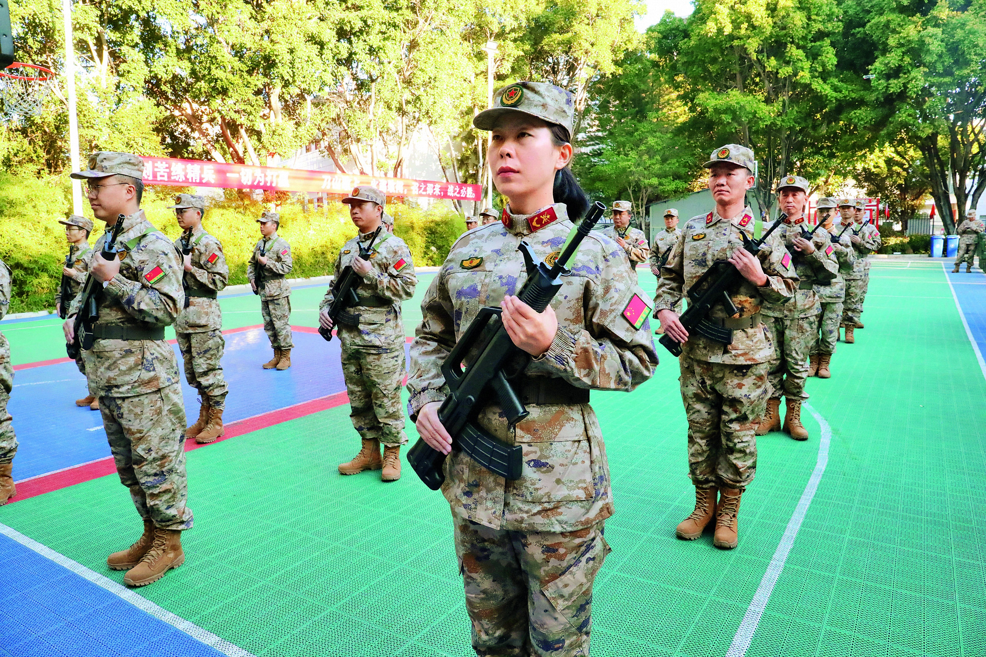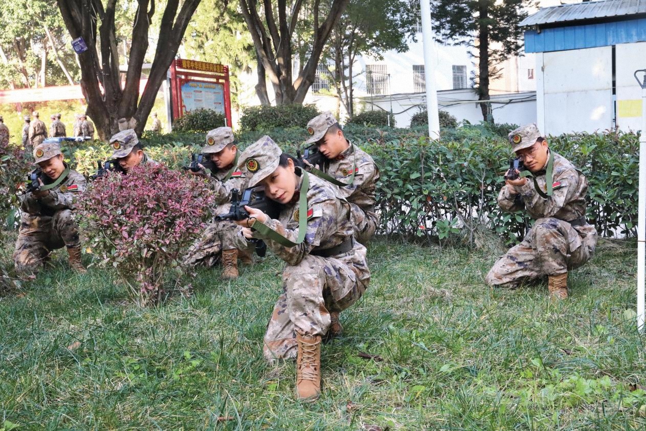 邢新樺與其他基干民兵一起進行班戰(zhàn)術(shù)訓(xùn)練。