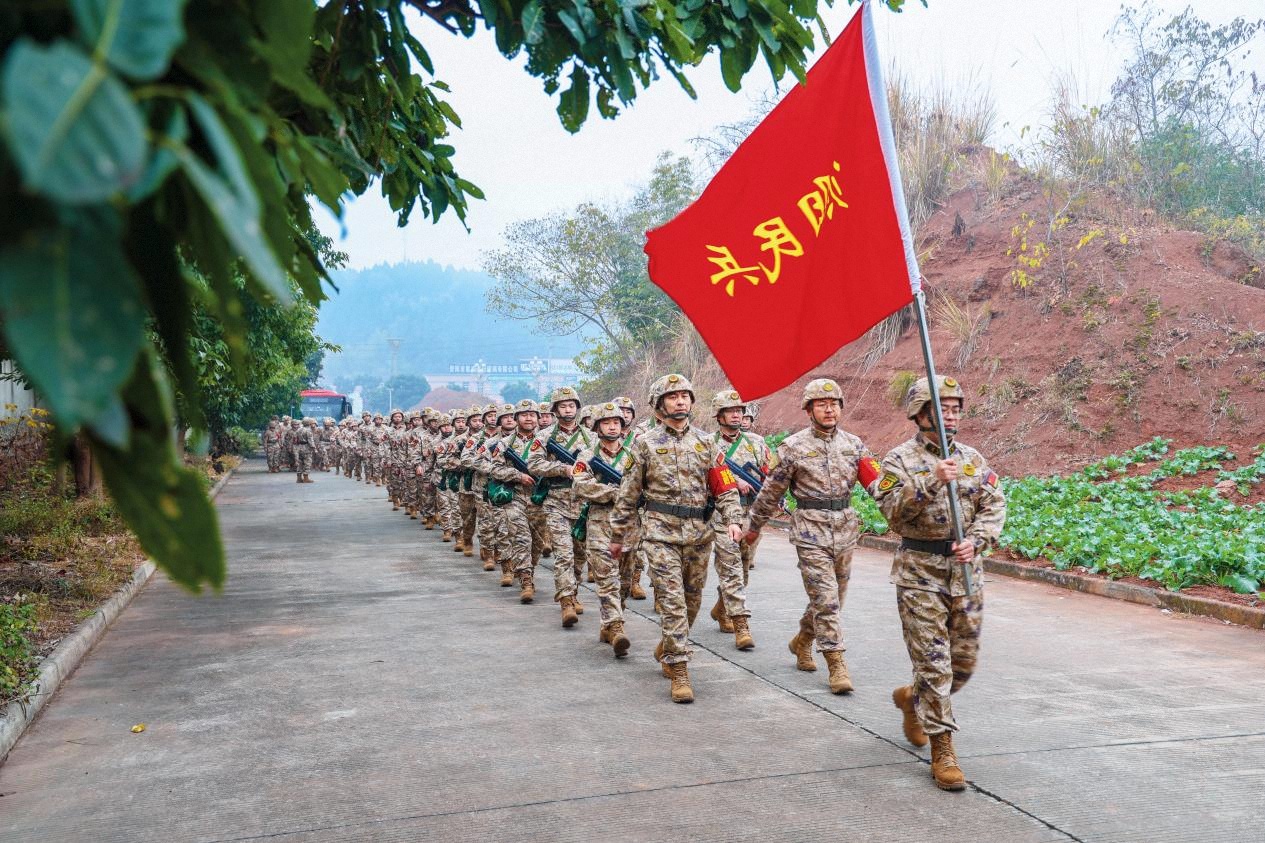 資陽市雁江區(qū)人武部組織民兵“學(xué)英模、建新功”拉練活動(dòng)。(攝影/李 帥)